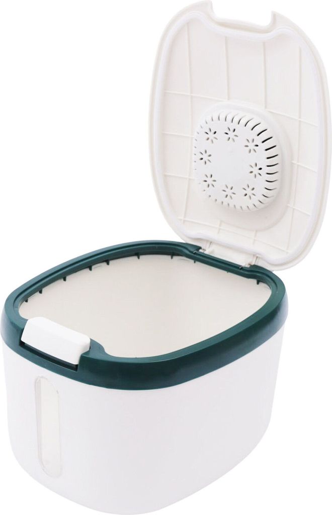 Endlich Ordnung in der Küche! Dieser Reisbehälter mit stolzen 5kg Fassungsvermögen ist genau das Richtige für alle die Wert auf frische Vorräte legen. Aus lebensmittelechtem ABS-Material, absolut sicher für deine Lebensmittel. Der transparente Bereich zeigt dir immer wie viel noch drin ist, ohne dass du den Deckel öffnen musst. Mit dabei: Ein praktischer Messbecher (200ml) für die perfekte Portionierung. Die Silikondichtung hält dein Getreide, Mehl oder Hülsenfrüchte staub- und wasserdicht frisch. Ein Knopfdruck genügt und der Deckel springt in 0,3 Sekunden auf - super praktisch beim Kochen! Die insektensichere Box im Deckel bietet Platz für Knoblauch oder Desoxidationsmittel. Ob für Reis, Weizen, Bohnen oder sogar Tierfutter - dieser Behälter ist ein echter Allrounder der in jeder Küche was hermacht!