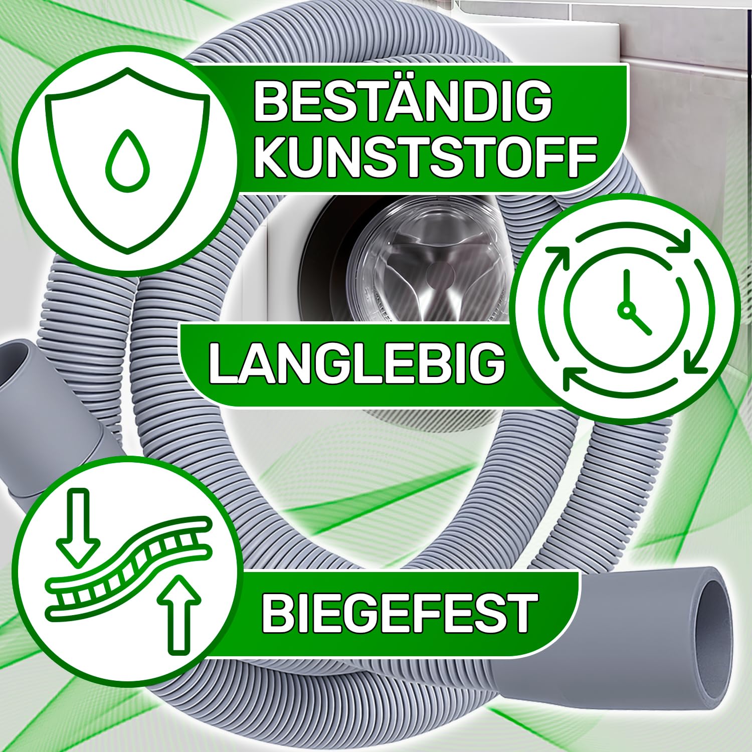 Dieser ONIX TECH Ablaufschlauch ist die perfekte Lösung wenn dein alter Schlauch undicht ist oder du ihn einfach austauschen willst! Mit 2,5m Länge reicht er für die meisten Installationen. Der Durchmesser von 19mm innen und 22mm außen passt perfekt zu den meisten Anschlüssen. Kompatibel mit AEG, Electrolux, Bauknecht, Indesit, Whirlpool und vielen anderen Marken - auch als Ersatz für Originalcode 5028435600. Mit geradem und gewinkeltem Anschluss - also für fast jede Situation geeignet. Aus flexiblem und haltbarem Kunststoff - knickt nicht so leicht ein und ist resistent gegen Beschädigungen. Montage ist super einfach - keine Spezialwerkzeuge nötig! Und das beste: 5 Jahre Garantie gibt dir totale Sicherheit. Ein Qualitätsprodukt das lange hält und deine Waschmaschine oder Spülmaschine zuverlässig entwässert!