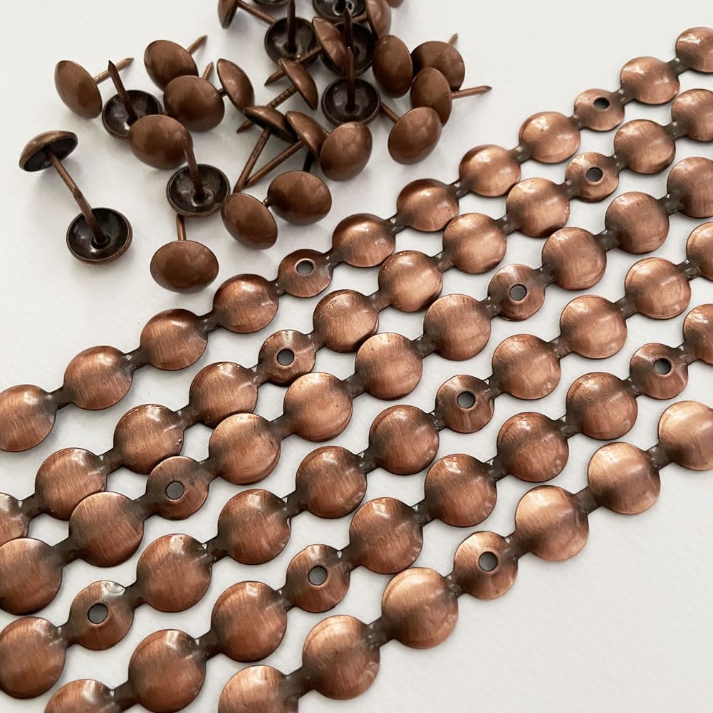 Verleihe deinen Möbeln einen edlen Look! Diese 5 Meter Polsternagel-Streifen in Kupfer verwandeln einfache Möbel in stylische Einzelstücke. Mit 11mm Nagelköpfen und 85 passenden Reißzwecken. Einfach zu verarbeiten - biegsam und leicht zu schneiden. Perfekt für Sofas, Stühle, Bettgestelle oder Holzkisten. Spart enorm Zeit gegenüber einzeln gesetzten Nägeln und garantiert eine perfekt gerade Linie. Einfach anbringen und sofort steht dein Möbelstück im neuen Glanz!