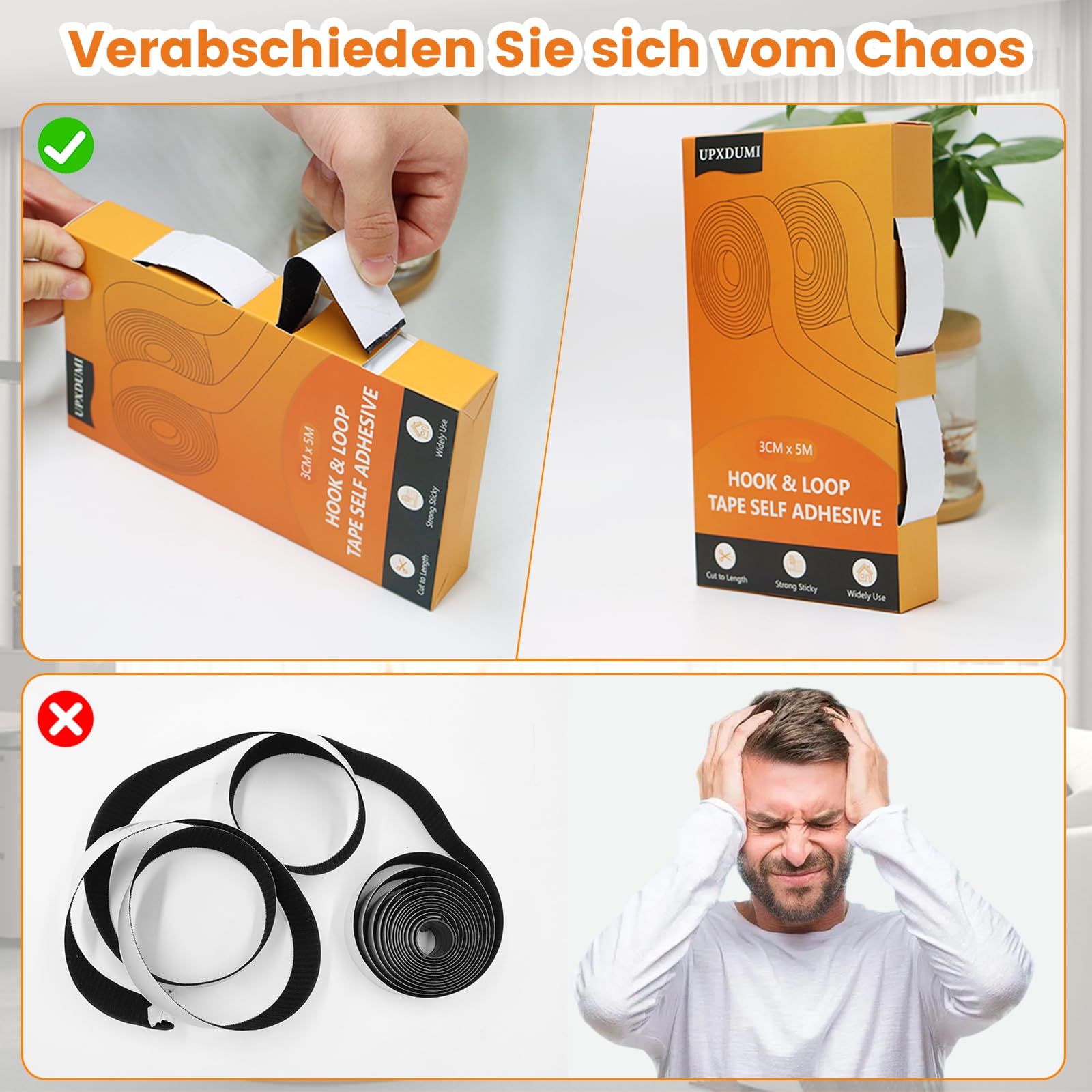 Dieses Klettband ist der absolute Alleskönner für Haus und Garten! 2 Rollen à 5m Länge und 25mm Breite, selbstklebend und extra stark haftend. Einfach abziehen, aufkleben und fertig - kein Bohren, Schrauben oder Kleben nötig. Hält super auf Holz, Glas, Metall und Kunststoff. Perfekt für Teppiche, Vorhänge, Kissen, Fliegengitter oder um Dinge im Haushalt zu organisieren. Auch outdoor geeignet und wetterfest. Das Beste: Lässt sich rückstandslos wieder entfernen und wiederverwenden. Für eine optimale Haftung die Oberfläche vorher reinigen und 24 Stunden warten. Einfach genial dieses praktische Band - es gibt kaum etwas, was man damit nicht machen kann!