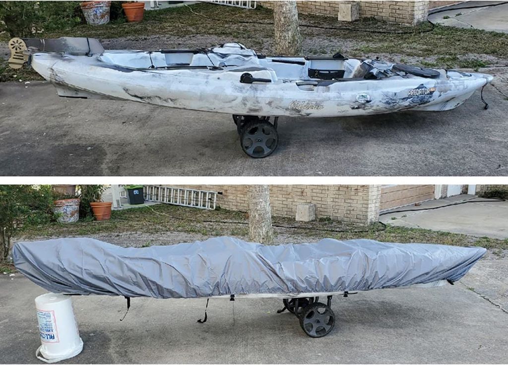 Dein Kajak verdient den besten Schutz! Diese wasserdichte Abdeckung aus robustem Oxford-Gewebe hält dein Boot sicher vor Regen, Schnee, Staub und der intensiven Sonneneinstrahlung. Das Tarnmuster sieht nicht nur cool aus, sondern tarnt auch kleine Verschmutzungen. Mit 5,5m Länge passt sie perfekt für Kajaks zwischen 5,1 und 5,5m Länge. Das verstellbare Clip-Verschlusssystem sorgt für einen sicheren Sitz bei Transport und Lagerung. Egal ob du dein Kajak auf dem Dachgepäckträger transportierst oder es außerhalb der Saison im Garten lagerst - diese Abdeckung schützt zuverlässig vor Umwelteinflüssen. Das Material ist waschbar und hält auch bei häufiger Nutzung lange. Perfekt nicht nur für Kajaks, sondern auch für Kanus, Angelboote, Rudermuscheln und Paddelbretter. Die Abdeckung ist für Innen- und Außenbereich geeignet und bietet ganzjährigen Schutz. So bleibt dein Wasserfahrzeug immer in Top-Zustand und du hast lange Freude daran. Einfach überziehen, zuschnallen und beruhigt sein!