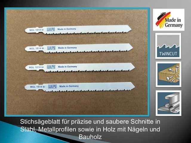 Hey, Heimwerker! Diese 5 Stichsägeblätter von kwb sind perfekt für präzise Holzarbeiten. 100mm Länge, mit feiner Zahnung für super saubere Schnitte. Aus HSS-Stahl, mega langlebig und scharf. Gehärtete Zähne sind kreuz-, freiwinkel- und konisch geschliffen - schneidet wie Butter durch Hartholz, Weichholz, Tischlerplatten und sogar Kunststoffe. Passt für alle gängigen Stichsägen mit T- oder U-Schaft. Ideal wenn's mal genau sein muss! Einfach einsetzen und loslegen. Das Set hält ewig und macht jede Sägearbeit zum Kinderspiel.