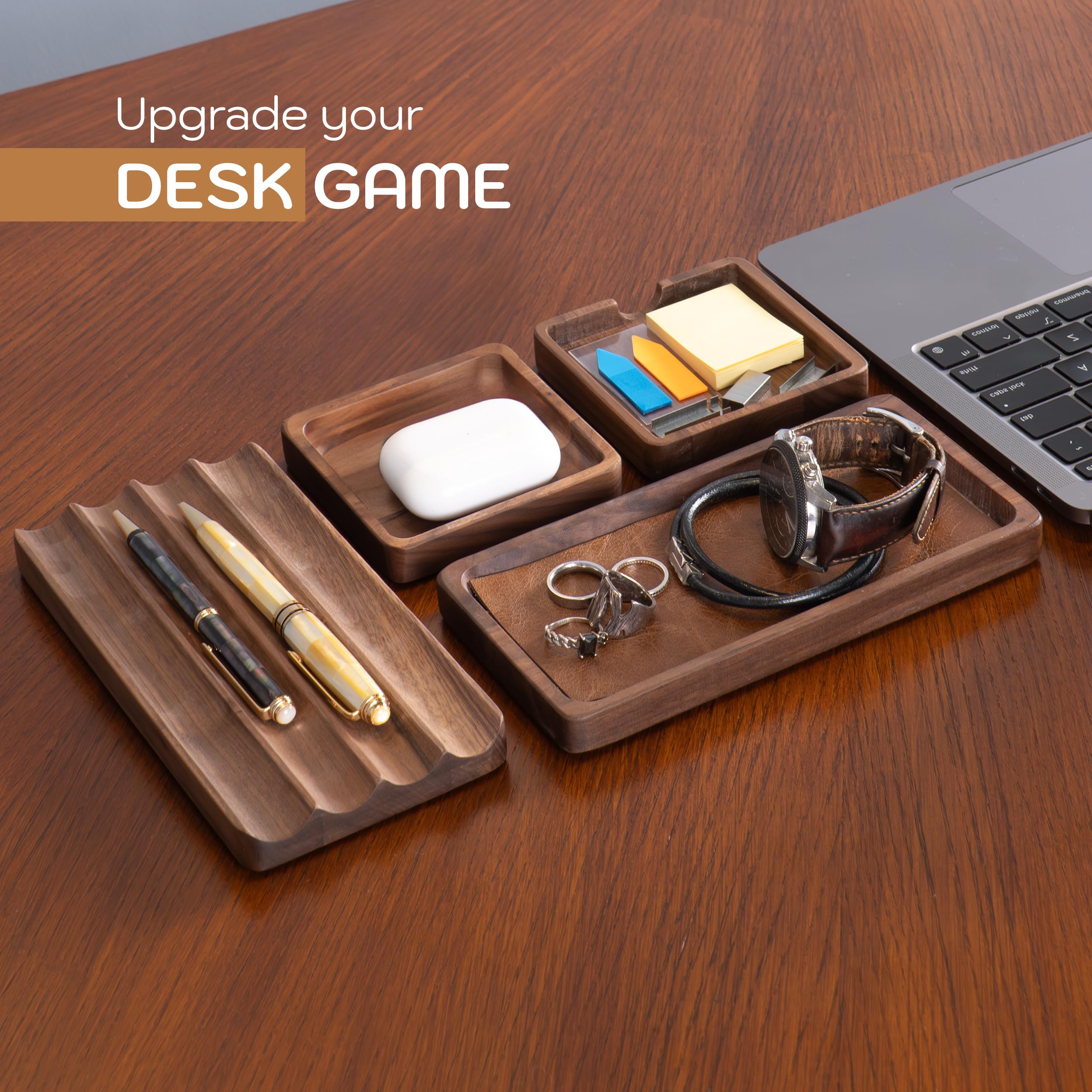 Suchst du stylisches Schreibtisch-Zubehör? Dieser Haftnotizhalter aus massivem Schwarznussholz ist genau das Richtige! Mit 10,5x10,5cm Grundfläche und 4,5cm Höhe - kompakt aber funktional. Das nordamerikanische Schwarznussholz hat wunderschöne natürliche Maserungen, jedes Stück ist ein Unikat! Der U-förmige Ausschnitt macht das Entnehmen von Haftnotizen super einfach. Vier Silikon-Pads an der Unterseite verhindern Rutschen - dein Schreibtisch bleibt sicher. Nur 180g leicht, aber robust verarbeitet für lange Freude. Nicht nur für Haftnotizen, sondern auch ideal für Büroklammern, Stifte oder andere Kleinigkeiten. Die glatte, handgeschliffene Oberfläche fühlt sich hochwertig an. Passt zu jedem Einrichtungsstil - ob modern, klassisch oder skandinavisch. Ein multifunktionales Stück, das Ordnung und Stil auf deinen Schreibtisch bringt. Einfach hinstellen und sich über mehr Organisation freuen!