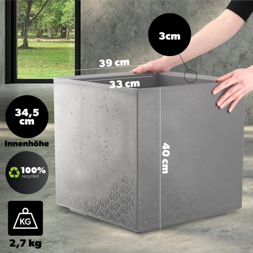 Wow, dieser Pflanzkasten sieht ja mega stylisch aus! In moderner Betonoptik und grauer Farbe - passt super in jede Wohnung. Mit 28,5x28,5cm und 7,5 Liter Fassungsvermögen ist er perfekt für Blumen, Kräuter oder kleine Pflanzen. Aus robustem Kunststoff, aber täuschend echt wie Beton. Die eleganten Füße geben ihm ne besondere Note und sorgen für gute Luftzirkulation. Wetterfest und frostsicher - also perfekt für drinnen und draußen! Ob aufm Balkon, Terrasse oder im Wohnzimmer - überall macht sich der Kübel super. Leicht zu reinigen und pflegeleicht. Verleiht deinem Zuhause sofort mehr Stil! Einfach bepflanzen und an der schicken Optik erfreuen.