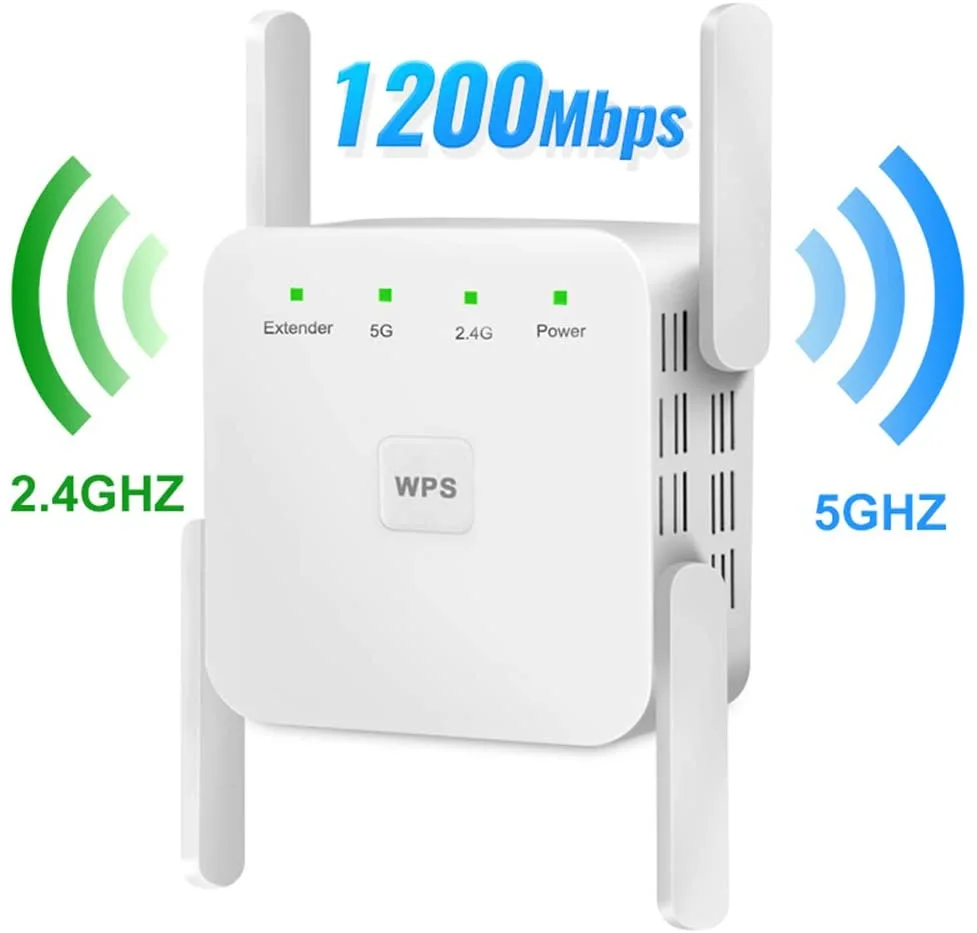 Schluss mit WLAN-Löchern! Dieser WiFi Extender mit satten 6 Antennen bringt starkes Internet in jede Ecke deiner Wohnung oder deines Hauses. Mit 1200 Mbit/s auf beiden Bändern (2,4 GHz und 5,8 GHz) streamst du ohne Ruckler und Ladezeiten. Der Clou: Bis zu 55 Geräte gleichzeitig - Smartphones, Laptops, Smart-TVs, Spielekonsolen, alles läuft flüssig. Einfach in die Steckdose stecken und in wenigen Minuten eingerichtet. Perfekt für Schlafzimmer, Keller, Garten oder Garage - überall dort, wo das Signal bisher schwach war. Mit Ethernet-Anschluss für kabelgebundene Geräte und modernster WPA2-Sicherheit. Sag goodbye zu Funklöchern und hello zu vollem WLAN-Genuss in deinem ganzen Zuhause!