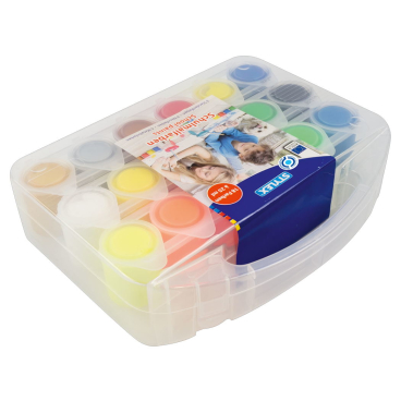 Hey, das ist ja das perfekte Farben-Set für kleine Künstler! Die Stylex Schulmalfarben kommen in 6 praktischen Farbtönen: Deckweiß, Zinnoberrot, Ultramarinblau, Gelb, Blaugrün und Schwarz. Jede Farbe ist in einem wiederverschließbaren 20ml Töpfchen verpackt - so trocknet nichts aus und die Farben bleiben lange frisch. Das Besondere: Diese Farben sind super ergiebig und haben eine hohe Deckkraft. Du kannst sie mit Wasser verdünnen für aquarellartige Effekte oder direkt aus dem Töpfchen für kräftige, deckende Flächen verwenden. Sie lassen sich auch super miteinander mischen und sind nach dem Trocknen wischfest und übermalbar. Hergestellt in Deutschland und TÜV-zertifiziert, also absolut sicher für Kinder. Perfekt für den Kunstunterricht, für zu Hause oder für kreative Nachmittage. Die pastosen Farben haften auf fast allen Untergründen und sind lichtecht. Einfach Pinsel raus und der Malerei freien Lauf lassen!