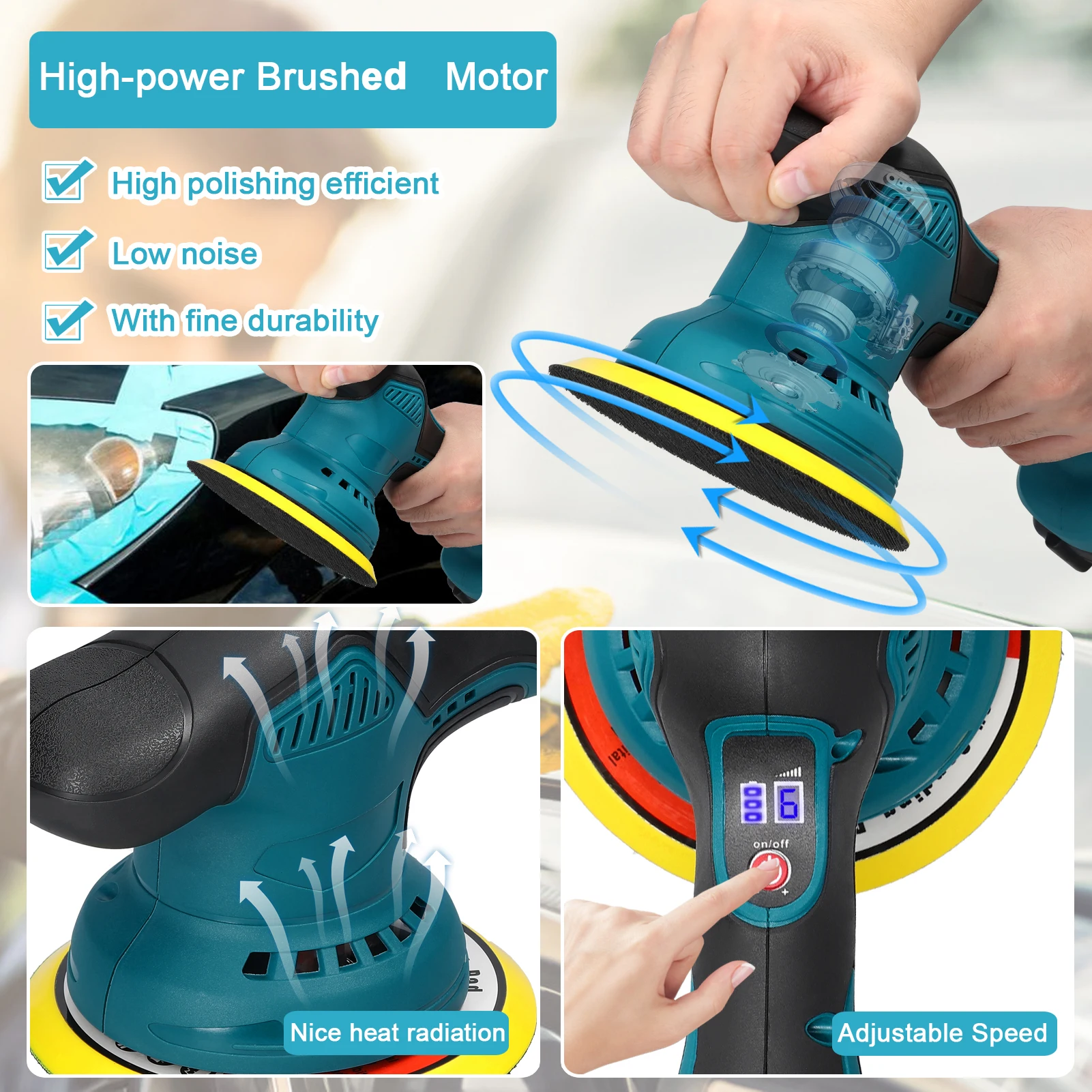 Professionelles Polieren war noch nie so einfach! Dieser elektrische Polierer hat 6 Geschwindigkeitsstufen von 2800-5500 U/min. Mit zwei 21V Akkus und leistungsstarkem Kupfermotor - leise aber kraftvoll. Leicht und ergonomisch mit gummiertem Griff. Im Lieferumfang: Schwammscheiben, Wollscheibe, Schleifpapier und Reinigungstücher. Perfekt für Auto, Boot oder Möbel. Die Wärmeableitung verhindert Überhitzung - auch bei langem Gebrauch.
