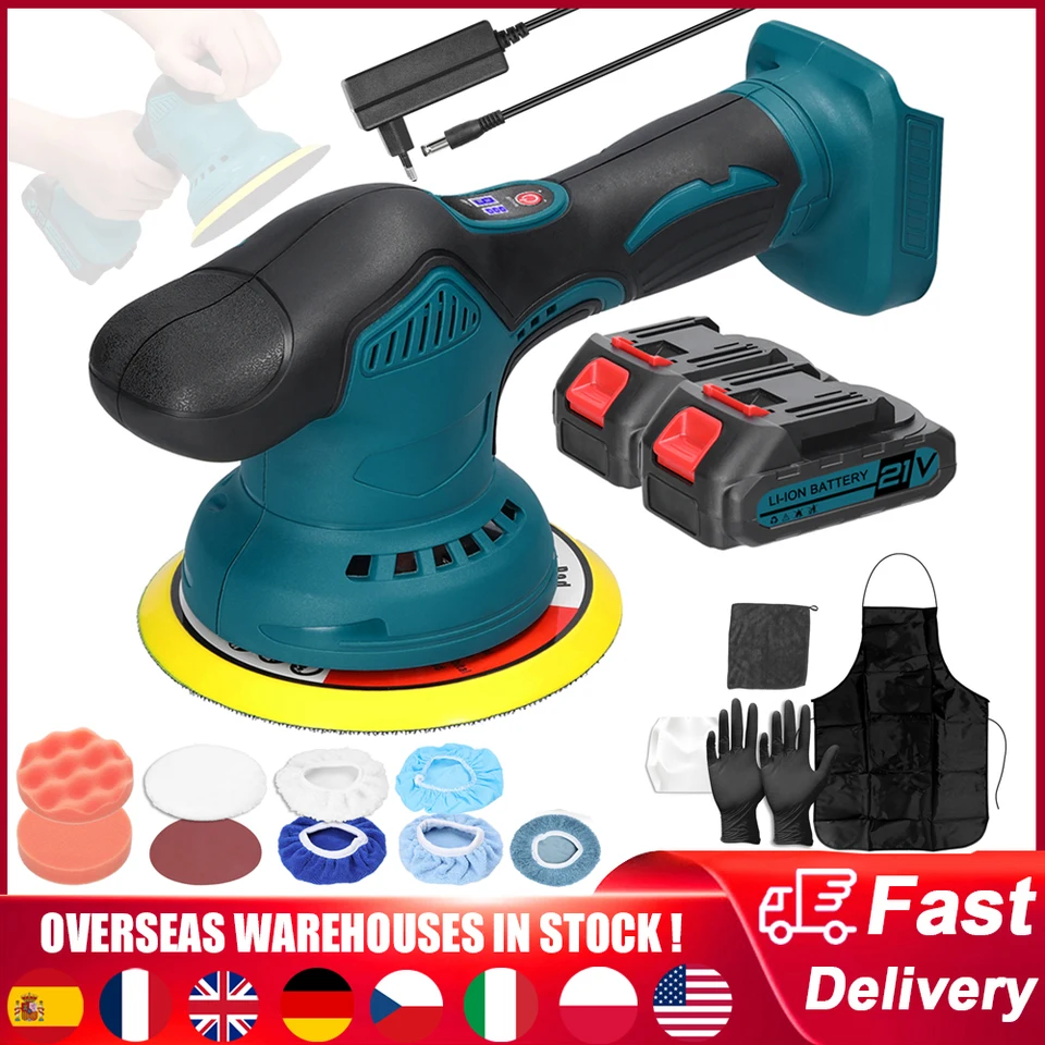 Elektrischer Polierer 21V - 6 Geschwindigkeiten Mit Akkus Für Auto & Wachspflege