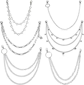 Mach deine Jeans zum Statement! Dieses Set hat 6 verschiedene Ketten im Punk-, Rock- und Hip-Hop-Style. Aus Metalllegierung, robust und glänzend. Perfekt um sie am Gürtel, an der Tasche oder an der Jeans zu befestigen. Klappern richtig cool beim Laufen. Jede Kette hat ihr eigenes Design - von schlicht bis auffällig. Ideal für Konzerte, Partys oder einfach um dem Alltagsoutfit Pep zu geben. Auch praktisch: Kann als Schlüsselanhänger verwendet werden. Für alle, die es etwas anders mögen!