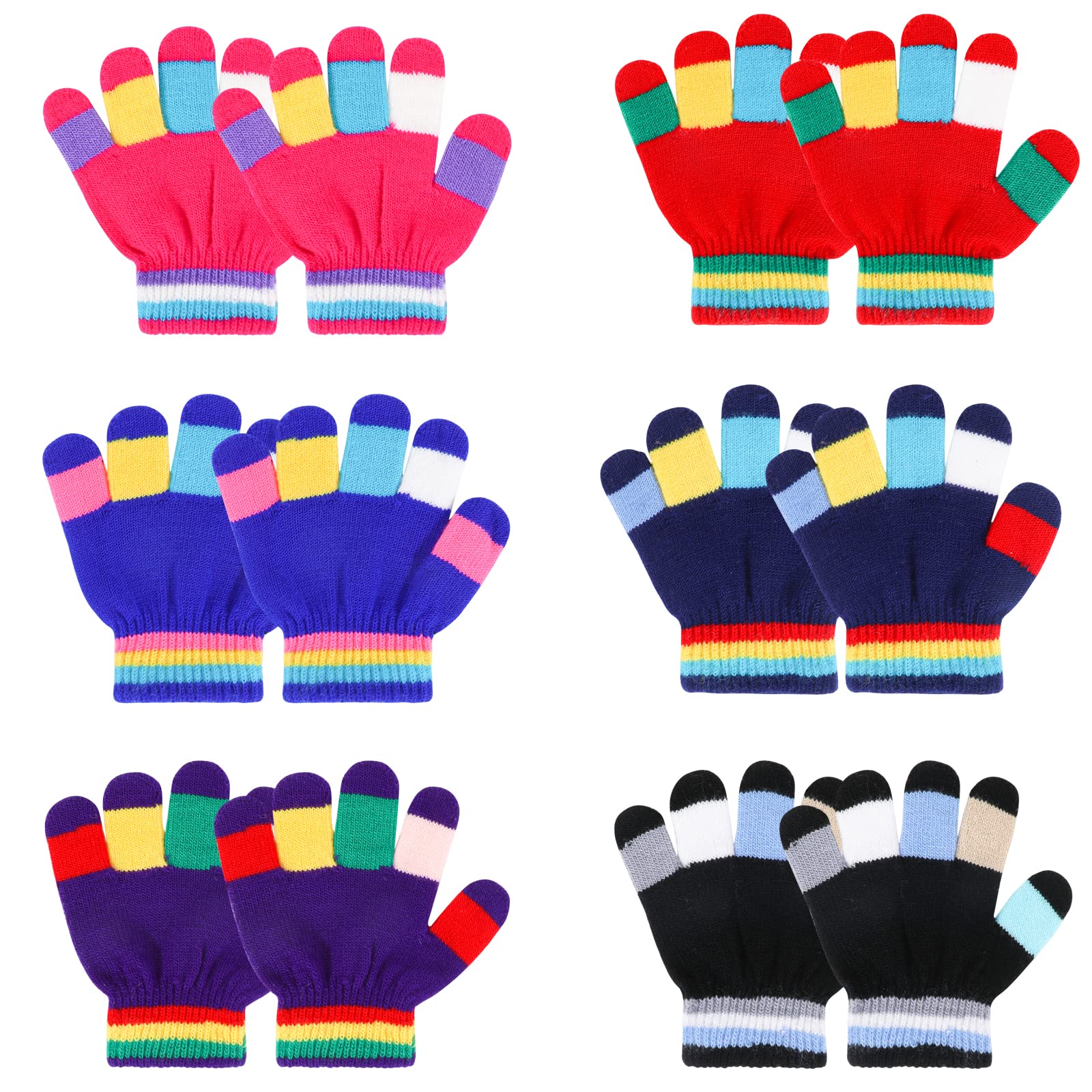 6 Paar kunterbunte Handschuhe für deine Kinder - perfekt für den Winter! Aus hochwertigem Thermo-Strickmaterial gefertigt, das die Hände deiner Kinder auch bei frostigen Temperaturen schön warm hält.