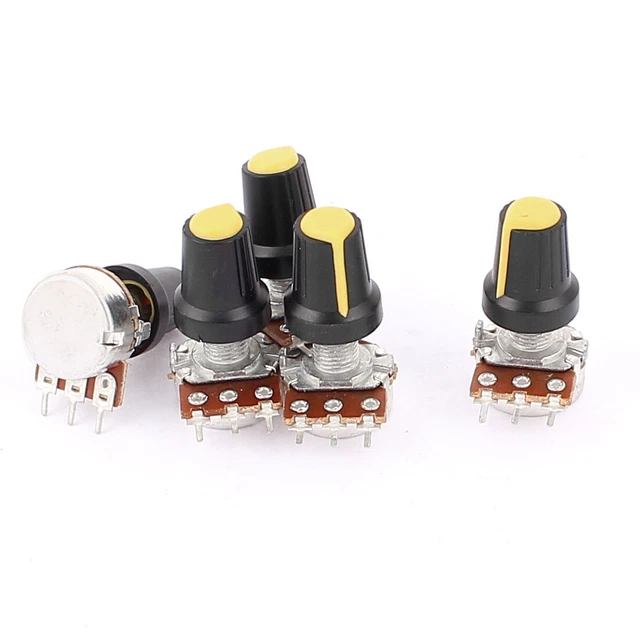 Perfekte Drehregler für deine Elektronik-Projekte! Dieses 5er Set B10K Potentiometer mit 10K Ohm Widerstandswert ist ideal für Lautstärkeregler an Audio-Geräten. 6-Pin Ausführung mit linearer Charakteristik (Typ B). Schaftdurchmesser 6mm bei 15mm Länge - passt für die meisten Standard-Knöpfe. Montage-Gewinde mit 4mm Durchmesser. Kompakte Abmessungen: 17x10mm Basis, 25mm Gesamthöhe. Aus Metall und hochwertigen Elektronik-Komponenten. Rändelwelle mit Split-Design für einfache Druckknopf-Montage. Einfache obere Einstellung für täglichen Gebrauch. Super für Verstärker, Mischpulte, DIY Audio Projekte und Modifikationen. Jedes Potentiometer wiegt ca. 44g - robuste Qualität. Mach deine Elektronik selbst steuerbar! Auch ideal für Hobby-Elektroniker und Musik-Enthusiasten.
