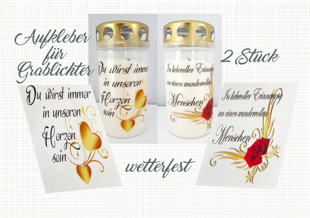 Eine wunderschöne Art, liebevoll zu gedenken! Dieses Set mit 6 hochwertigen Aufklebern für Grabkerzen trägt die berührende Botschaft 'Wir schicken dir zum Geburtstag unsere Liebe in den Himmel'. Jeder Aufkleber misst 5x8cm und passt perfekt auf Standard-Grabkerzen und Grablaternen. Die wetterfesten und UV-beständigen Aufkleber behalten auch nach langer Zeit ihre schöne weiße Farbe und die elegante Schrift. Mit einem dezenten Herzchen-Symbol als liebevolles Detail. Einfach auf Glas, Keramik oder Kunststoff anzubringen - ob für rote oder weiße Grablichter. Schafft einen würdevollen Ort der Erinnerung und zeigt die Verbundenheit zu unseren geliebten Verstorbenen. Wichtig: Entzündlich - von Feuerquellen fernhalten. Eine einfache aber so bedeutungsvolle Art, besondere Tage wie Geburtstage im Gedenken zu begehen und die Liebe über den Tod hinaus auszudrücken.