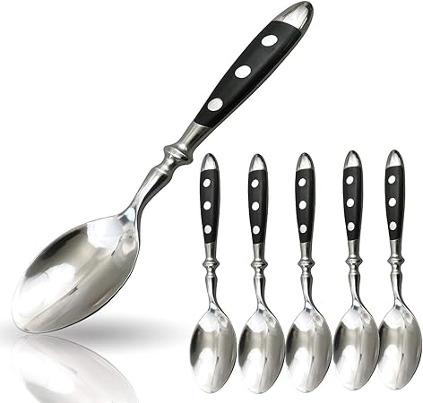 Stylische Edelstahl-Löffel im 6er-Set! Jeder Löffel 17cm lang, goldfarben und aus hochwertigem Edelstahl. Perfekt für Kaffee, Tee, Desserts oder Eis. Die glatte Oberfläche ist leicht zu reinigen - spülmaschinenfest. Vielseitig einsetzbar für Zuhause, Café, Bar oder Restaurant. Praktischer langer Griff für bequemes Rühren und Essen. Ein tolles Geschenk für Kaffee-Liebhaber und Genießer. Hochwertige Verarbeitung für lange Freude. Mach deine Tischdeko komplett mit diesen eleganten Löffeln!