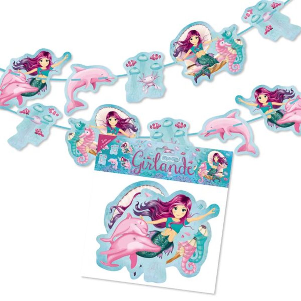 Total magische Meerjungfrau-Deko für die perfekte Kinderparty! 6 Girlanden mit insgesamt 9m Länge - reicht für große Räume. Holographisch schimmernd - je nach Lichteinfall ändern sich die Farben! Mit niedlichen Meerjungfrauen, Muscheln, Quallen und Seesternen. Doppelseitig bedruckt - von überall gut sichtbar. Aus hochwertigem Bastelkarton, handgenäht - nichts reißt so schnell. Perfekt für Meerjungfrauen-Partys, Unterwasser-Themen oder Einhorn-Partys. Einfach aufhängen und sofort ist Party-Stimmung! Ob an der Wand, über dem Tisch oder an der Decke - überall ein Hingucker. Damit wird das Kinderzimmer zum Ozean! Einfach vorsichtig entknoten und aufhängen - schon strahlen die Kinderaugen! Die perfekte Deko für unvergessliche Geburtstagsfeiern!