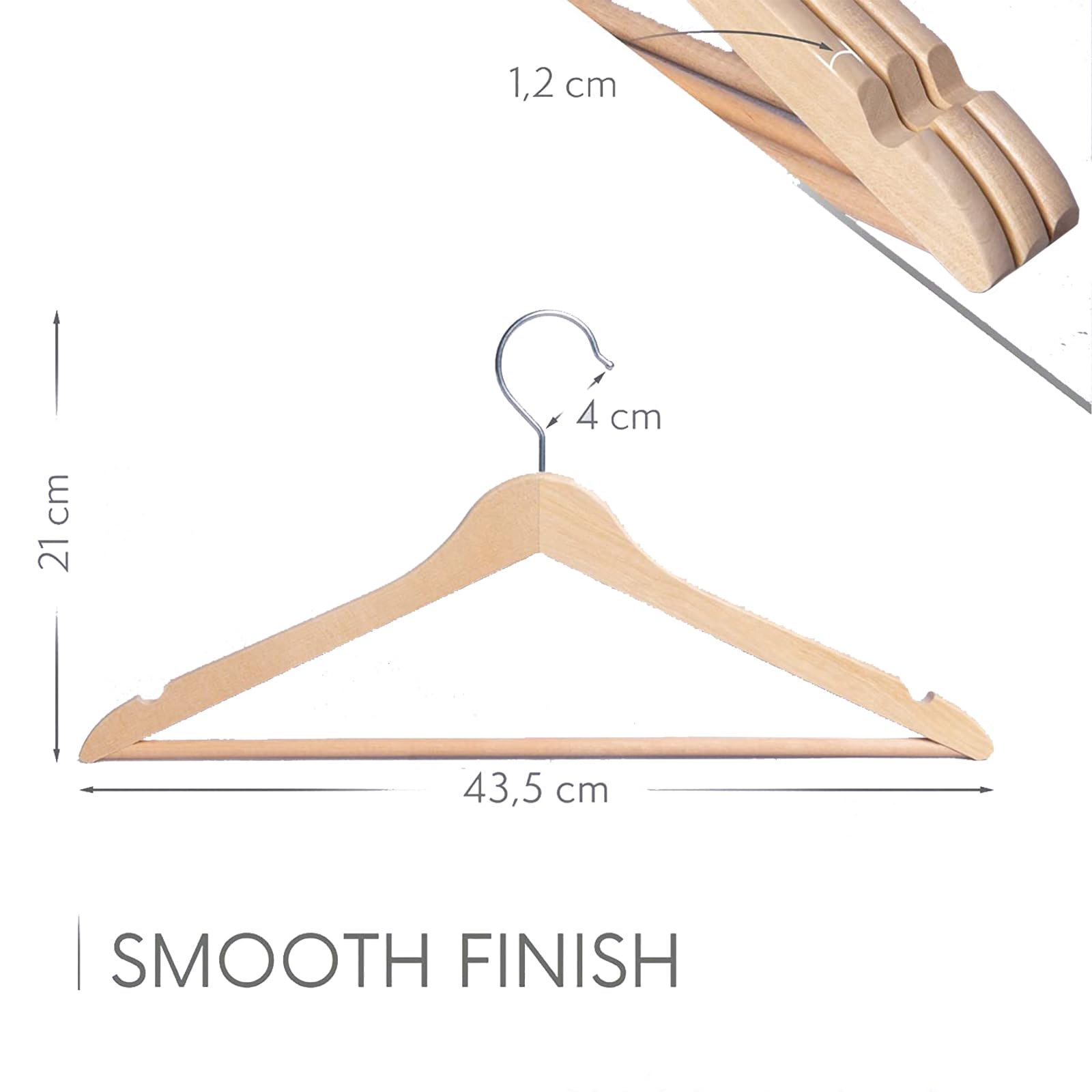 Hey, diese 6 Naturholz-Kleiderbügel sind ja mal richtig praktisch! Aus solidem Holz gefertigt - stabil und langlebig. Die 360° drehbaren Haken sind das absolute Highlight - so kommst du super easy an deine Kleidung ran.