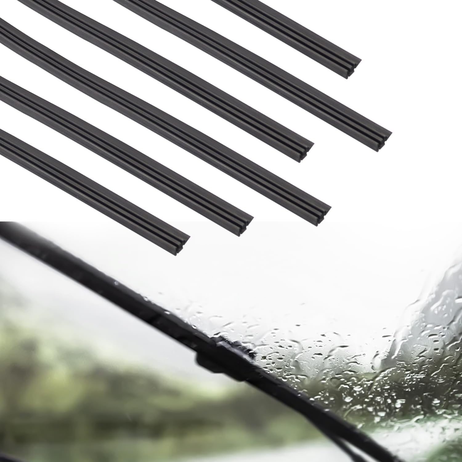 Schluss mit verschmierten Scheiben bei Regen! Diese 6 Scheibenwischer-Gummis aus Naturkautschuk sorgen für eine klare Sicht - bei jedem Wetter. Mit 800 mm Länge kannst du sie einfach auf die benötigte Größe zuschneiden, sodass sie zu fast jedem Auto passen. Die spezielle Oberflächenbehandlung reduziert Wasserflecken, Kratzer und lästige Wischgeräusche. Einfach den alten Gummi aus dem Wischerblatt ziehen, den neuen reinschieben und überstehendes Material abschneiden - schon hast du wieder perfekte Sichtverhältnisse. Kompatibel mit den meisten Fahrzeugen: Pkw, Busse, Transporter, Lkw - egal ob für Front- oder Heckscheibenwischer. Mit 6 Stück im Pack bist du für die nächste Zeit bestens versorgt!