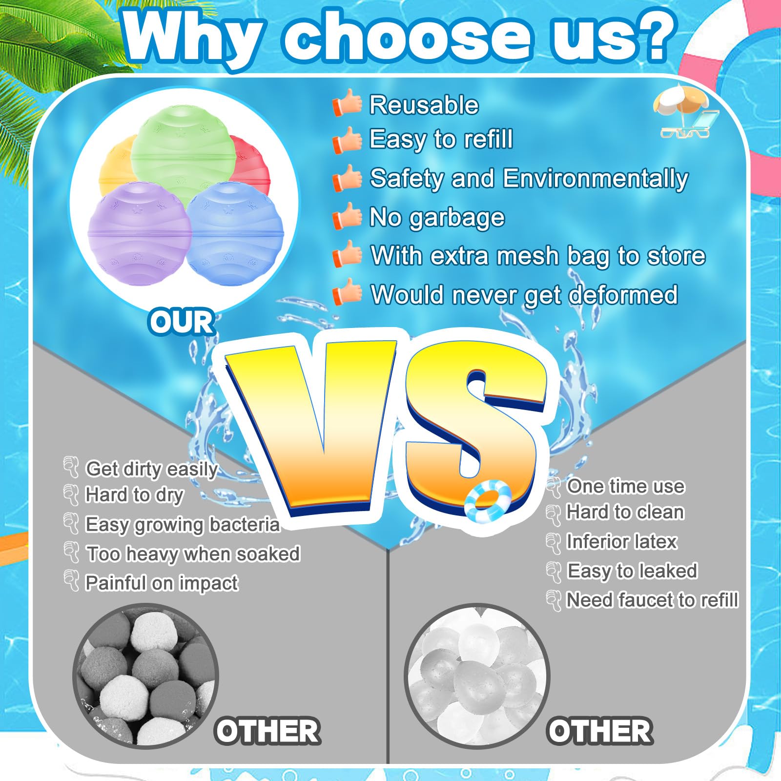 Hey Sommer-Fan! Diese wiederbefüllbaren Wasserbomben machen Wasserschlachten noch spaßiger! 6 Stück im Set + Mesh Aufbewahrungsbeutel.
