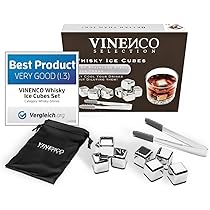 Whiskey genießen ohne Verwässerung - das geht mit diesen coolen Kühlsteinen! 6 handgeschnitzte Steine aus natürlichem Quarz, die deinen Drink kühl halten ohne ihn zu verwässern. Einfach vorher ins Gefrierfach legen und dann in den Whiskey - fertig! Jeder Stein ist ein Unikat mit leichten Größen- und Farbunterschieden (zwischen weißlich und rosa). Perfekt für zuhause, die Bar oder als Geschenk für Whisky-Liebhaber. Wiederverwendbar und super praktisch. Macht jeden Whisky-Genuss noch besser!