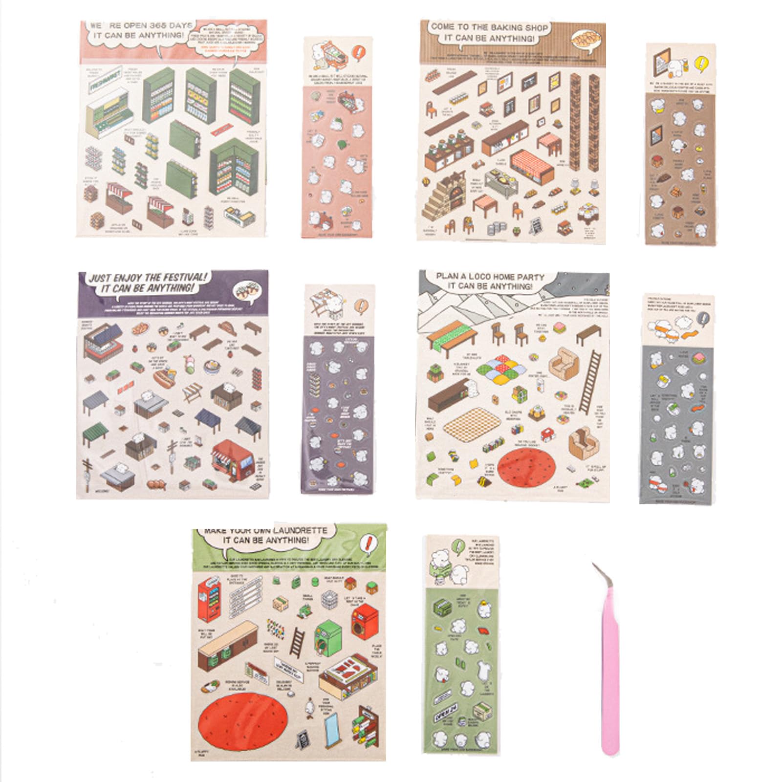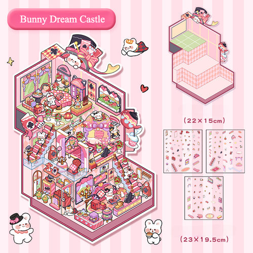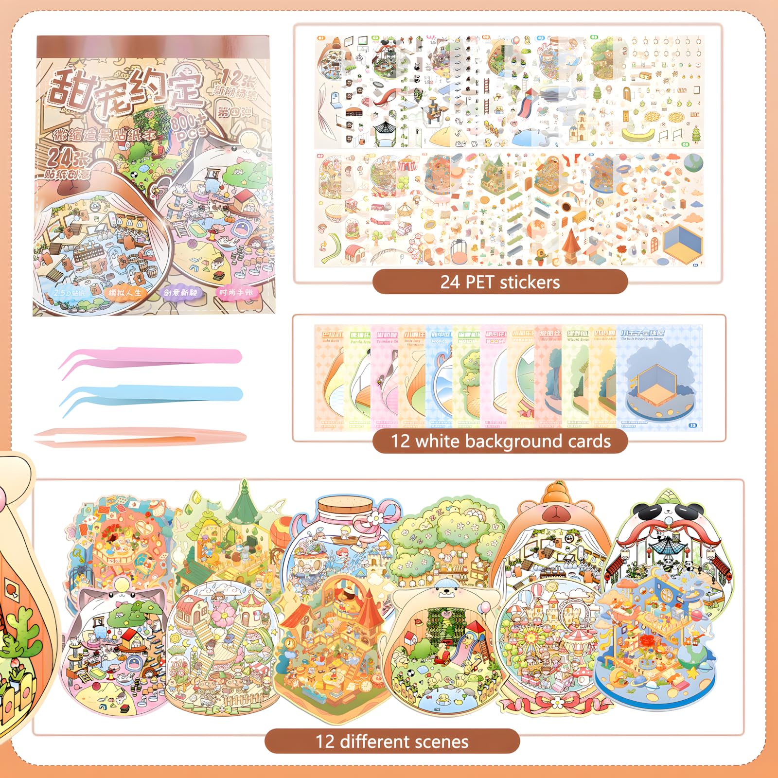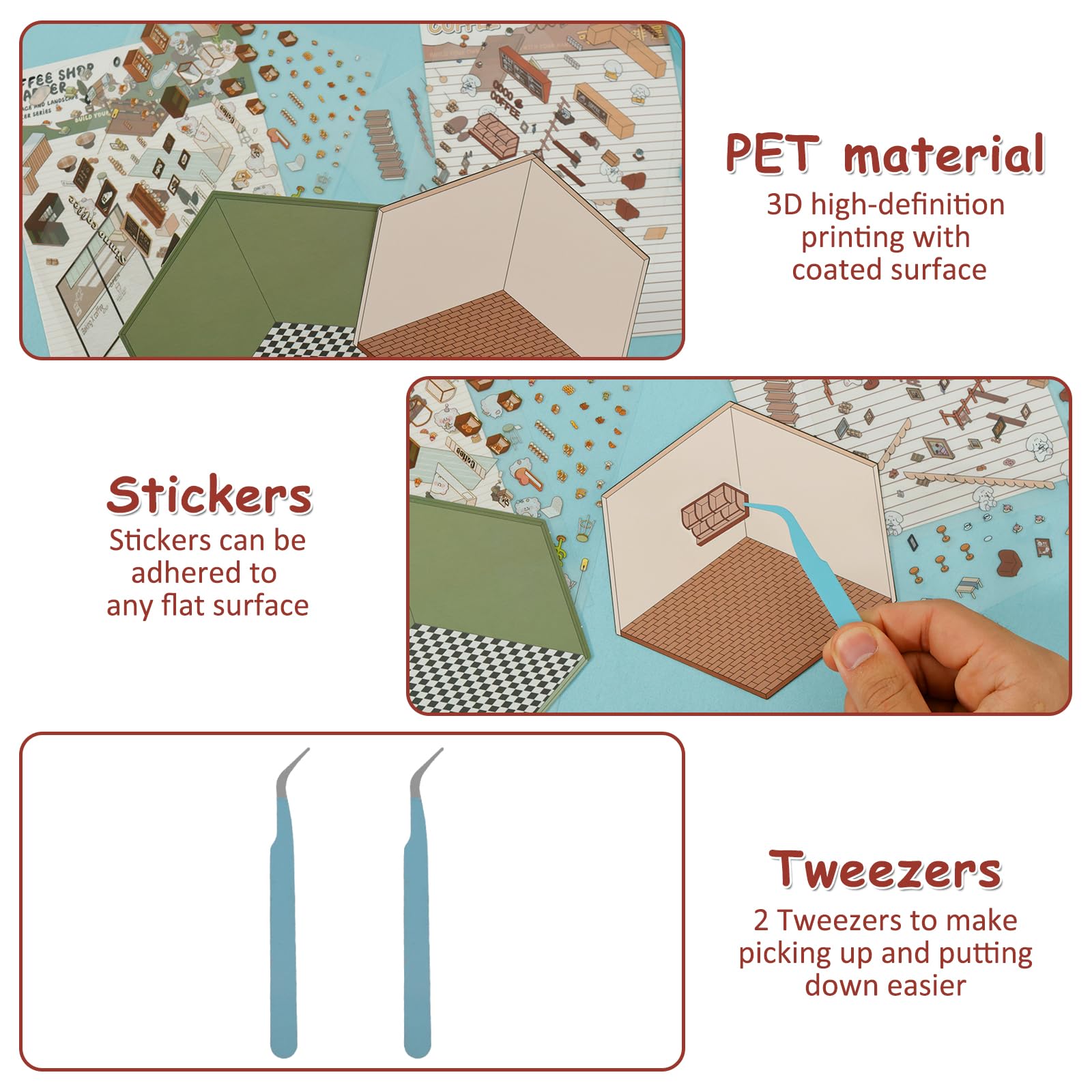 Hey, dieses Sticker Book ist total süß und macht richtig Spaß! Mit den 3D-Aufklebern kannst du deine eigenen kleinen Welten gestalten - ganz ohne Kleber und Sauerei.\\n\\nIm Set enthalten:\\n• 6 verschiedene Themen: Erdbeer-Häuschen, Bekleidungsgeschäft, Bäckerei, Blumenladen, Bibliothek und Frischobst-Häuschen\\n• Eine praktische rosa Pinzette für präzises Arbeiten\\n• Alle Sticker wiederverwendbar\\n• Größe: 20x16cm bzw. 15x15cm\\n\\nWarum es so besonders ist:\\n• Hochwertige Materialien - reißen nicht ein\\n• Perfekt gestanzt - klare Details\\n• Flexibel einsetzbar - auf allen glatten Oberflächen\\n• Fördert Kreativität und Motorik\\n• Ideal zum Stressabbau\\n\\nEgal ob für dich selbst oder deine Kinder - die Sticker sind eine super Beschäftigung. Du kannst sie immer wieder neu arrangieren und deine eigenen kleinen Szenen kreieren. Perfekt für lange Nachmittage oder als kreative Pause. Die Pinzette macht das Ablösen und Platzieren ganz einfach - selbst für kleine Hände!