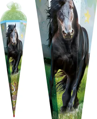 Die perfekte Schultüte für alle Pferdefans! Diese wunderschöne 85 cm große Schultüte von ROTH zeigt einen süßen Haflinger mit rustikalen Motiven in natürlichen Farben. Die 6-eckige Form und der weiße Tüllverschluss sehen einfach toll aus. Besonderes Highlight: Die patentierte Roth-Spitze aus Holz verhindert das Abknicken der Spitze - super praktisch! Dazu gibt's eine feine Spitzenborte mit einer Stoff-Margerite als Extra-Deko. Hergestellt in Deutschland und von Hand kaschiert, also echte Qualitätsarbeit. Für Mädchen, die sich auf dem Reiterhof wie zu Hause fühlen, ist diese Schultüte genau das Richtige. Mach den ersten Schultag zu einem unvergesslichen Erlebnis! Das textile Roth-Label am Verschluss zeigt, dass es sich um ein hochwertiges Produkt handelt.