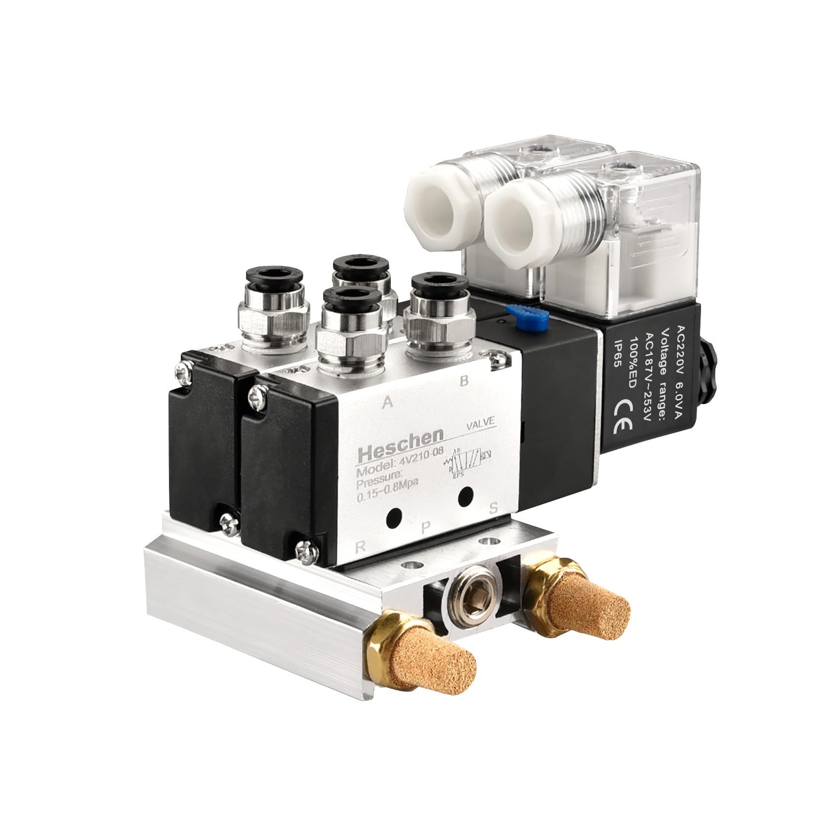 • Heschen Aluminium Ventilbasis - 6-reihig PT1/4 Für 4V210 Magnetventile