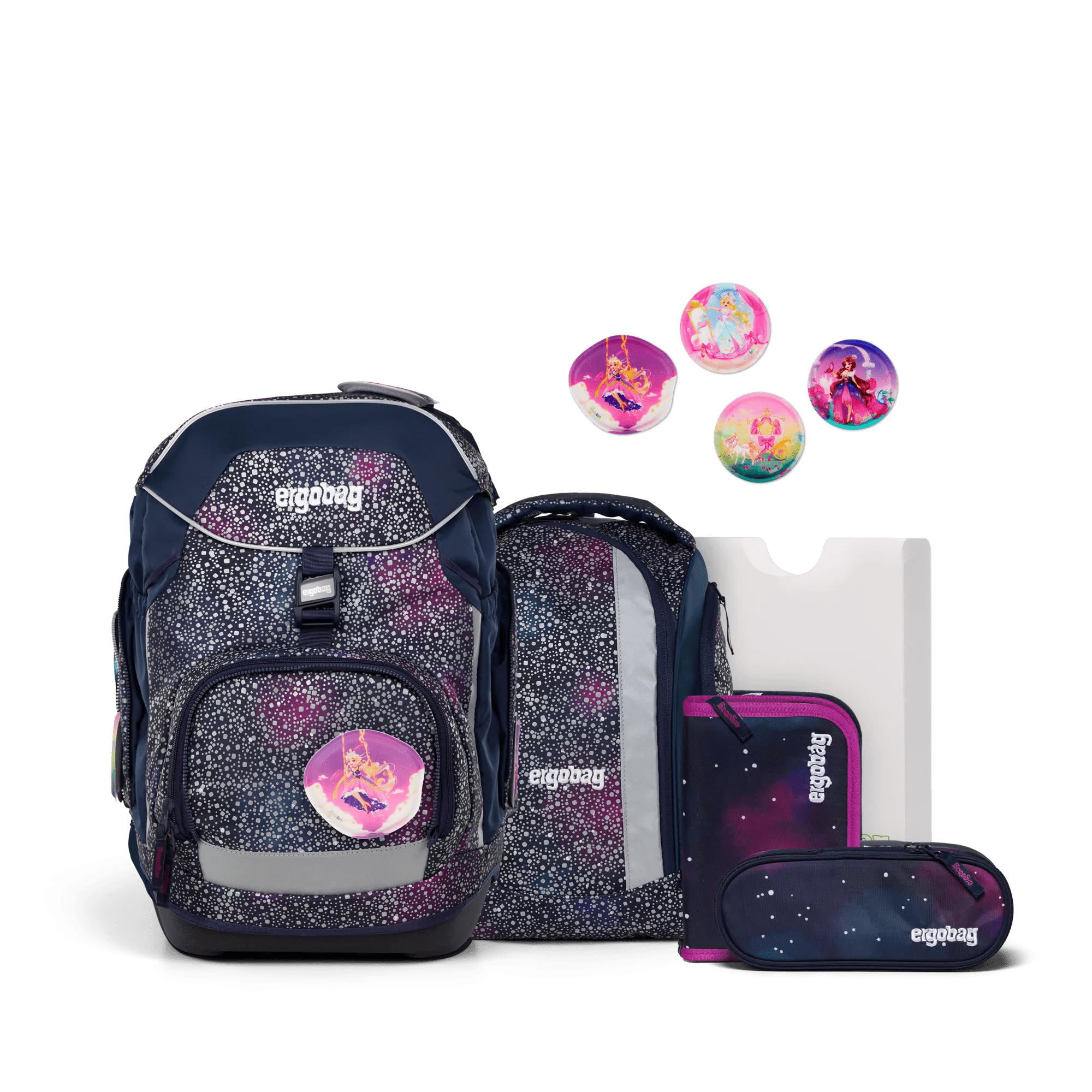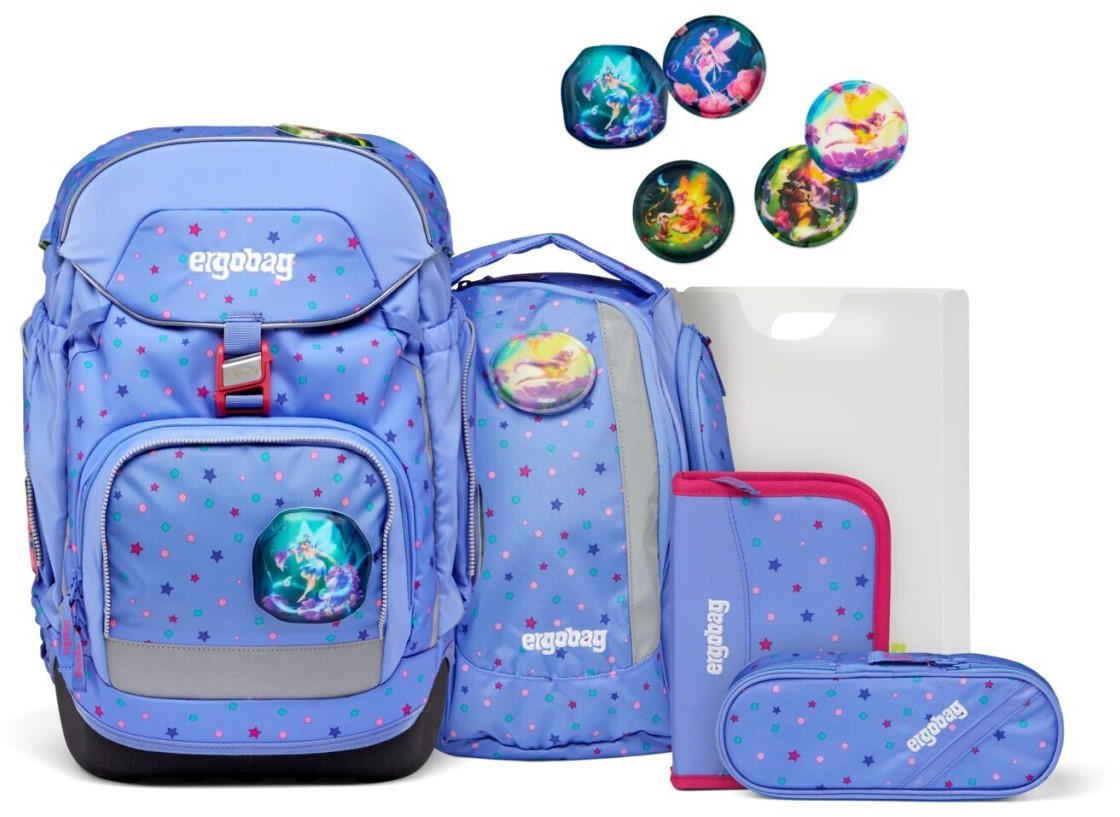 Der perfekte Start in die Schulzeit! Dieses ergobag Set hat alles, was dein Kind für die Schule braucht. Der Rucksack ist super ergonomisch mit höhenverstellbarem Rückensystem, Beckenflossen und Brustgurt - so wird das Gewicht optimal verteilt. Im Set enthalten: Der Hauptrucksack mit auslaufsicherem Fach für die Trinkflasche, stabiler Bodenwanne und praktischen Seitentaschen. Dazu kommt ein Sportbeutel, der einfach am Rucksack befestigt werden kann - Hände frei! Hochwertige Reflektoren sorgen für Sicherheit im Dunkeln. Das Design 'Bärlaxy' in Lila ist einfach niedlich. ergobag steht für Qualität und Verantwortung - PFC-frei und fair produziert. Ein toller Begleiter für die gesamte Grundschulzeit. Dein Kind wird den Rucksack lieben und hat alles perfekt organisiert!