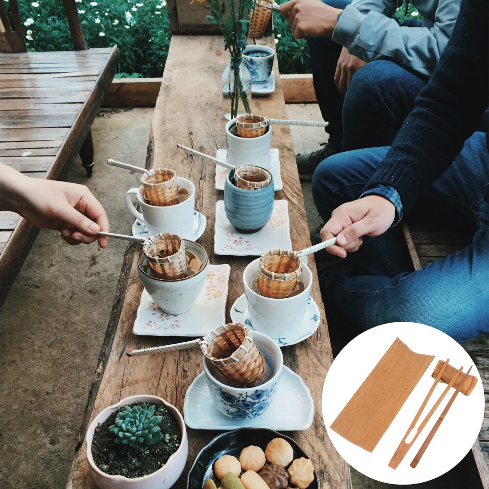 Teezeremonie wie in China! Dieses wunderschöne 6-teilige Teeset aus natürlichem Bambus bringt traditionelle Teekultur in dein Zuhause. Im Set enthalten sind alles, was du für die Gong Fu Teezeremonie brauchst: Teehalter, Teesieb, Teeschaufel, Tee-Clip, Tee-Nadel und Teelöffel. Das natürliche Bambus-Material ist nicht nur umweltfreundlich, sondern verleiht dem Tee auch ein besonderes Aroma. Perfekt für Teeliebhaber, die ihren Teegenuss zelebrieren wollen. Die handgefertigten Tee-Utensilien sind etwa 18cm hoch und haben einen Durchmesser von 5,5cm - praktisch und doch dekorativ. Einfach reinigen und immer wieder verwenden. Auch ein tolles Geschenk für Tee-Fans oder alle, die asiatische Kultur lieben. Mach dir eine schöne Tasse Tee und genieße die entspannende Atmosphäre einer echten Teezeremonie!