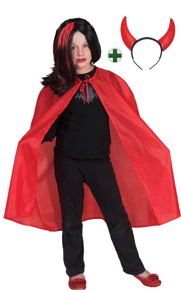 Wow, dieses 6-teilige Teufel Kostüm Set macht dich zur unangefochtenen Königin der Nacht! Perfect für Halloween, Karneval oder jede Mottoparty, die bisschen mehr Drama vertragen kann.\n\nIm Set: 1x samtiger Umhang (140 oder 150cm), 1x Maleficent-artige Hörner, 1x blaue Kristallkette, 1x Gothic Ohrringe, 1x mystischer Stab und 1x lange Handschuhe - alles, was du für den perfekten dämonischen Look brauchst!\n\nDie Qualität überzeugt: Der Umhang aus weichem Samt mit Velours-Einsatz fällt natürlich und glänzt dezent. Die Hörner haben ein weiches Innenband - auch nach Stunden noch bequem. Und das Zubehör? Einfach nur stunning!\n\nGrößentipps: S für 145-165cm, M für 165-185cm. Einfach anziehen und Blicke auf sich ziehen! Auch ein mega Geschenk für alle Party-Liebhaberinnen. Transformiere dich in die dunkle Göttin, die du immer sein wolltest!