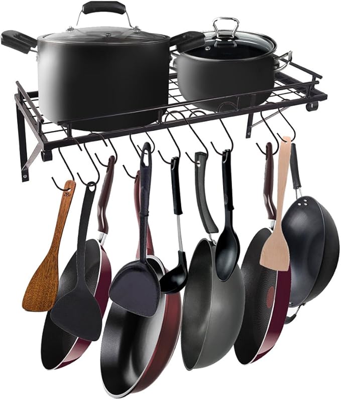 Platzprobleme in der Küche? Dieses hängende Regal schafft Abhilfe! Die 60 cm lange Aluminium-Schiene kommt mit 8 drehbaren Haken, an denen du endlich all deine Küchenhelfer unterbringst: Kochlöffel, Pfannenwender, Tassen, Geschirrtücher - alles findet hier seinen Platz. Das Beste: Du musst nicht bohren! Einfach die Klebefolie abziehen und auf einer glatten Oberfläche (Fliesen, Glas, lackiertes Holz) festdrücken. So gewinnst du wertvolle Arbeitsfläche zurück und hast alles Wichtige immer griffbereit. Die Haken lassen sich frei drehen und verschieben - du bestimmst, wo was hängt. Aus stabilem Aluminium gefertigt, das auch schwerere Töpfe und Pfannen problemlos aushält. Das dezente Design in Vintage-Optik passt zu jeder Kücheneinrichtung und sieht dabei noch richtig edel aus. Aber nicht nur in der Küche ein Hit: Auch im Bad für Handtücher, im Flur für Schlüssel oder auf dem Balkon für Gartengeräte super einsetzbar. Die Montage ist wirklich simpel - keine Vorkenntnisse nötig. Einfach Oberfläche gut reinigen, Schiene anpressen und nach 24 Stunden ist der Kleber voll ausgehärtet. Ein echter Organisationsexperte für mehr Ordnung im Haushalt - und das zu einem unschlagbaren Preis!