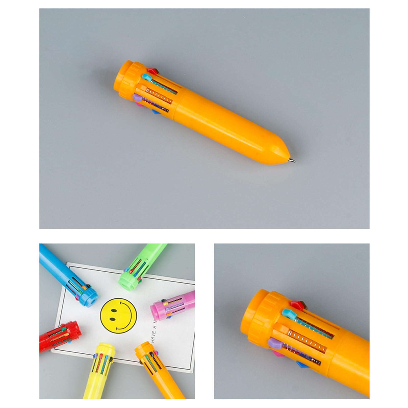 Kreativität pur mit diesem genialen 6-teiligen Kugelschreiber-Set! Jeder Stift bietet dir satte 10 Farben in einem - das sind insgesamt 60 leuchtende Farben für deine kreativen Projekte. Perfekt für Schüler, Studenten, Künstler und alle, die gerne schreiben und zeichnen. Das praktische wieder einziehbare Design macht die Stifte besonders benutzerfreundlich und transportabel. Mit der 0,88mm Mine und dem Top-Roller-Balldesign gleiten die Stifte geschmeidig über das Papier. Das Soft-Grip-System verteilt den Schreibdruck gleichmäßig auf die Finger - super bequem auch bei langen Schreib- oder Zeichensessions. Die schnell trocknende Tinte verhindert lästiges Verschmieren und sorgt für saubere Linien. Ideal für Tagebuchführung, Büroarbeit, Schulaufgaben, Kunstprojekte oder Brainstorming. Das stapelbare Farb-Design ermöglicht dir blitzschnelles Wechseln zwischen den Farben. Einfach den Schieber drücken und schon hast du eine neue Farbe parat. Perfekt als Geschenk für Geburtstage, Partys oder einfach mal so. Mit den Maßen 13x2cm passen die Stifte in jede Federmappe oder Schublade. Mach deine Notizen, Zeichnungen und Ideen bunter und organisiert - mit diesem vielseitigen Stifte-Set wird Schreiben zum Erlebnis!