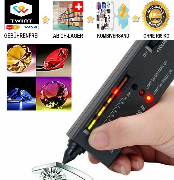 Hey, dieser Diamant-Tester ist echt praktisch! Echte Diamanten erkennen? Kein Problem - bei echten Steinen piept es und die Lampe leuchtet (ab Stufe 9). Bei künstlichen Kristallen wie Zirkonia oder Glas passiert einfach nichts. Super einfach in der Handhabung und absolut sicher für deine Schmuckstücke. Keine Sorge, deine Diamanten bleiben unversehrt! Das coole Extra: Die 60-fache LED-Lupe ist perfekt, um Steine, Münzen oder sogar Briefmarken genau unter die Lupe zu nehmen. Brauchst du Hilfe? Die Jungs vom Support erklären dir alles Schritt für Schritt - auch wenn du noch nie so ein Teil in der Hand hattest. Einfach mal ausprobieren!
