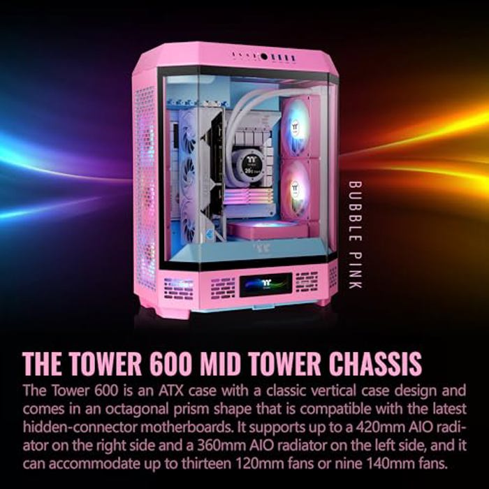 Ein PC-Gehäuse der Extraklasse! Der Thermaltake Tower 600 in trendigem Butter Caramel ist ein echter Hingucker. Das vertikale Design spart Platz und sieht einfach mega aus. Unterstützt die neuesten Motherboards mit versteckten Anschlüssen - total aufgeräumt! Platz für bis zu 13 Lüfter und massive 420mm Radiator. Perfekt für Gaming-PCs und Workstations. Mit werkzeuglosem Design, vier USB 3.0 Ports und modernem USB-C Anschluss. Ob vertikal oder horizontal - dieses Gehäuse macht einfach alles mit. Für alle, die nicht nur Leistung, sondern auch Stil wollen!