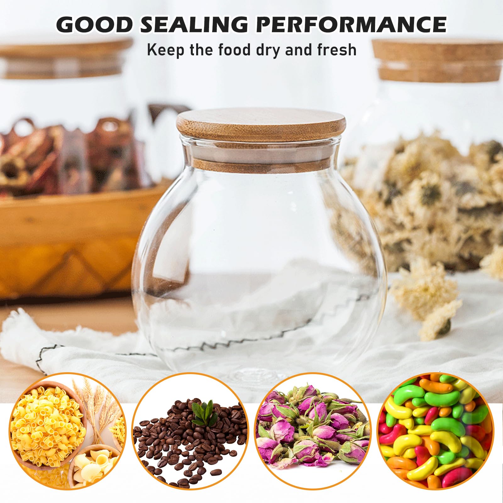 Ordnung und Stil in deiner Küche mit diesen wunderschönen Vorratsgläsern von Tarana! Mit 600ml Fassungsvermögen sind sie perfekt für die Aufbewahrung von Tee, Kaffee, Gewürzen, Nüssen, Müsli oder Süßigkeiten. Aus hochwertigem Borosilikatglas gefertigt, sind die Gläser robust, spülmaschinengeeignet und kristallklar - so behältst du immer den Überblick über deine Vorräte. Die edlen Deckel aus massivem Bambus sind handpoliert und mit einer Silikondichtung versehen, die für perfekte Luftdichtheit sorgt und deine Lebensmittel länger frisch hält. Der praktische Metallgriff mit dekorativem Muster macht das Öffnen und Schließen zum Kinderspiel. Das einzigartige gestreifte Design der Gläser verleiht deiner Küche einen modernen und ästhetischen Look. Die Holzdeckel sollten per Hand gewaschen werden, um ihre Schönheit zu bewahren. Mit lebenslanger Garantie kaufst du absolut sorgenfrei. Verleihe deiner Küche das gewisse Etwas und halte deine Lebensmittel optimal frisch!