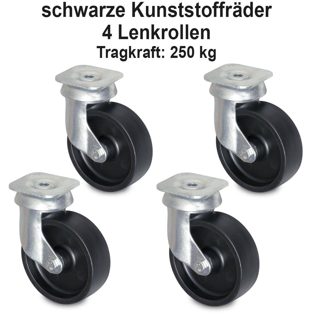 Hey Lager-Profi! Dieser BRB Logistikroller ist dein neuer bester Freund im Lager! Mit 600x400 mm Maße passt er perfekt für Eurobehälter oder zwei kleine Behälter à 400x300 mm. Und das beste: Der Roller trägt satte 250 kg - da kannst du richtig was draufpacken! Das Rollerdeck aus bruch- und schlagsicherem ABS-Kunststoff hat nen umlaufenden Rand, damit nix abrutscht. Die kugelgelagerten Lenkrollen aus verzinktem Stahl mit grauen Gummirädern (Ø 100 mm) laufen super leise und hinterlassen keine Spuren! Maße: 615x415x170 mm außen, Ladefläche 607x407x146 mm. Perfekt fürs Lager, Werkstatt oder jeden Ort wo du regelmäßig Kisten bewegen musst! Spart dir Rücken und Zeit - einfach Behälter drauf, schieben und fertig! Robust, langlebig und einfach praktisch! Mit BRB kennst du dich ja aus - Qualität die hält was sie verspricht!