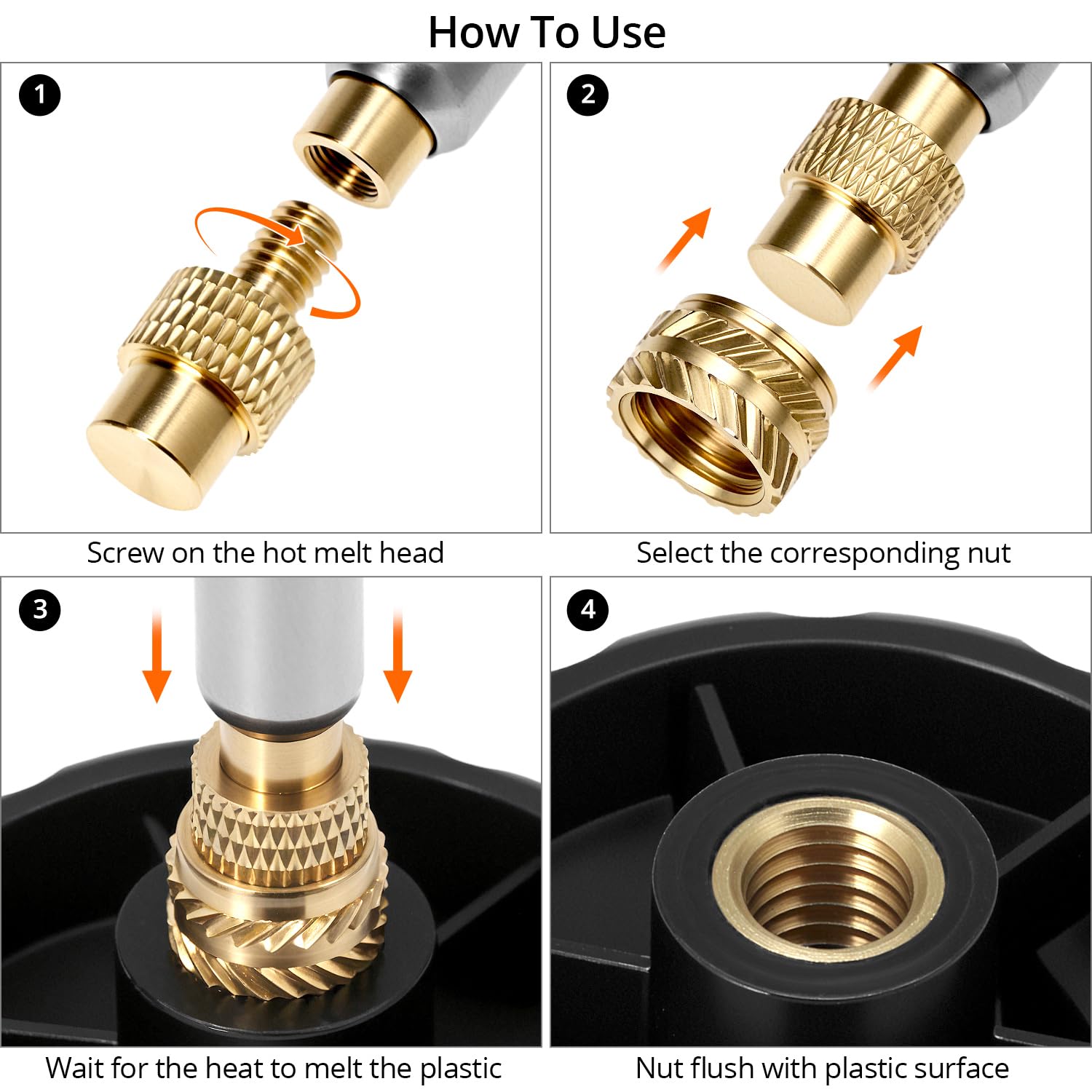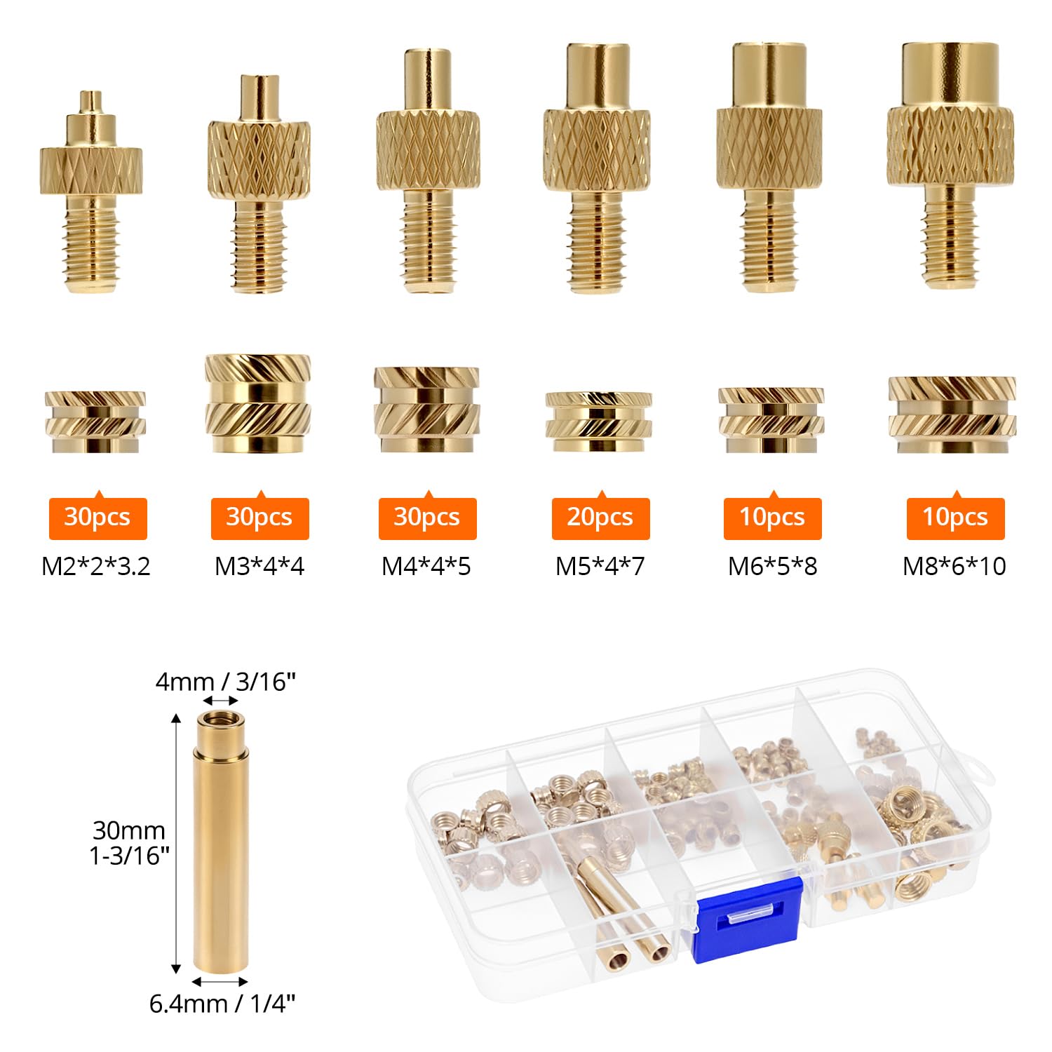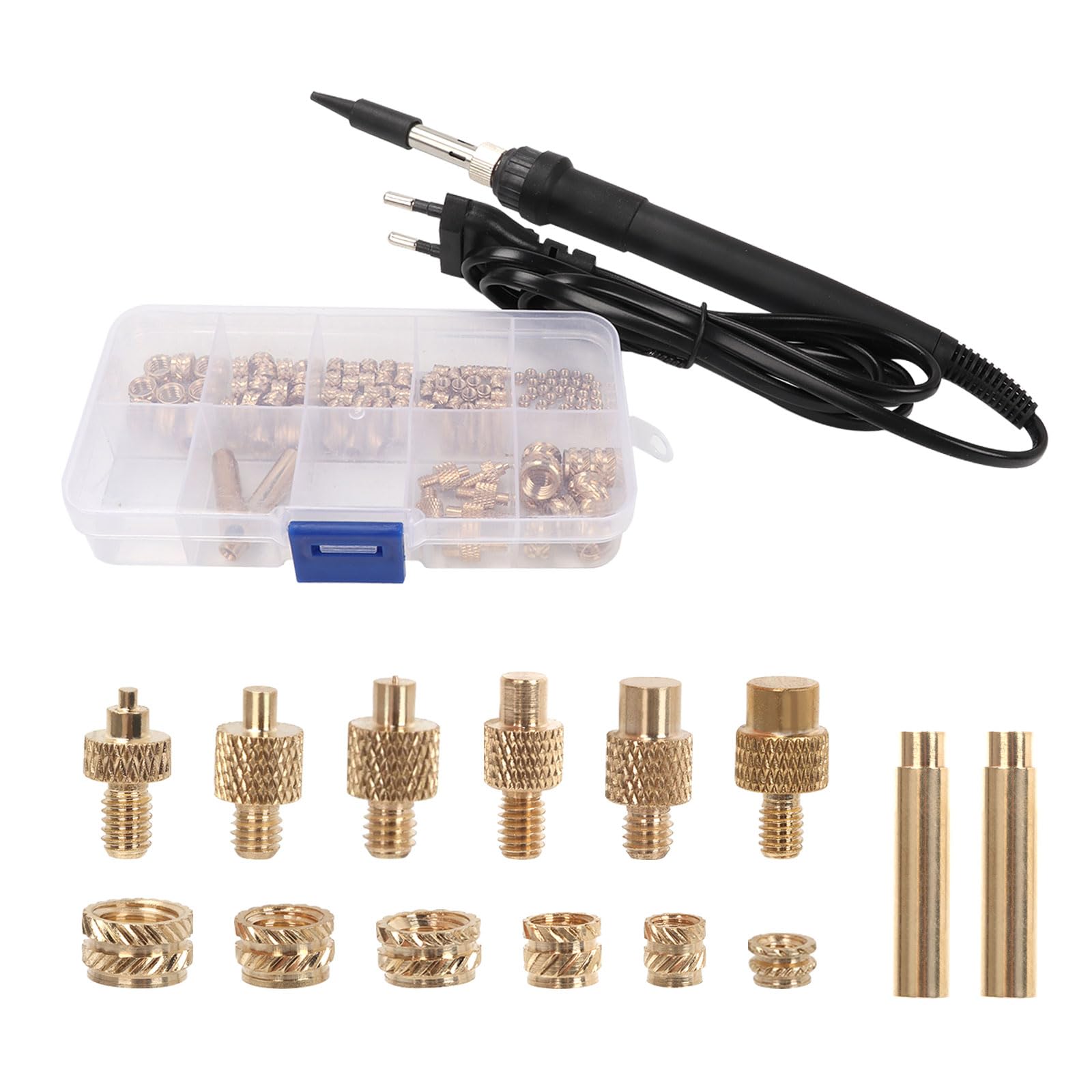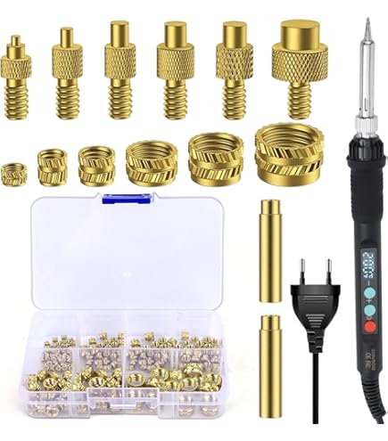 Gewindeeinsätze in Kunststoff einlöten? Mit diesem 60W Lötkolben-Set geht's easy! 130 Teile inklusive: Gewindeeinsätze in M2, M3, M4, M5, M6, M8, Lötspitzen und Adapter.