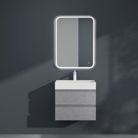 Mai & Mai Badmöbel Set Waschbeckenunterschrank 60cm Beton Optik | Mit 2 Schubladen & Waschbecken