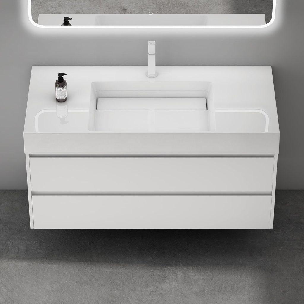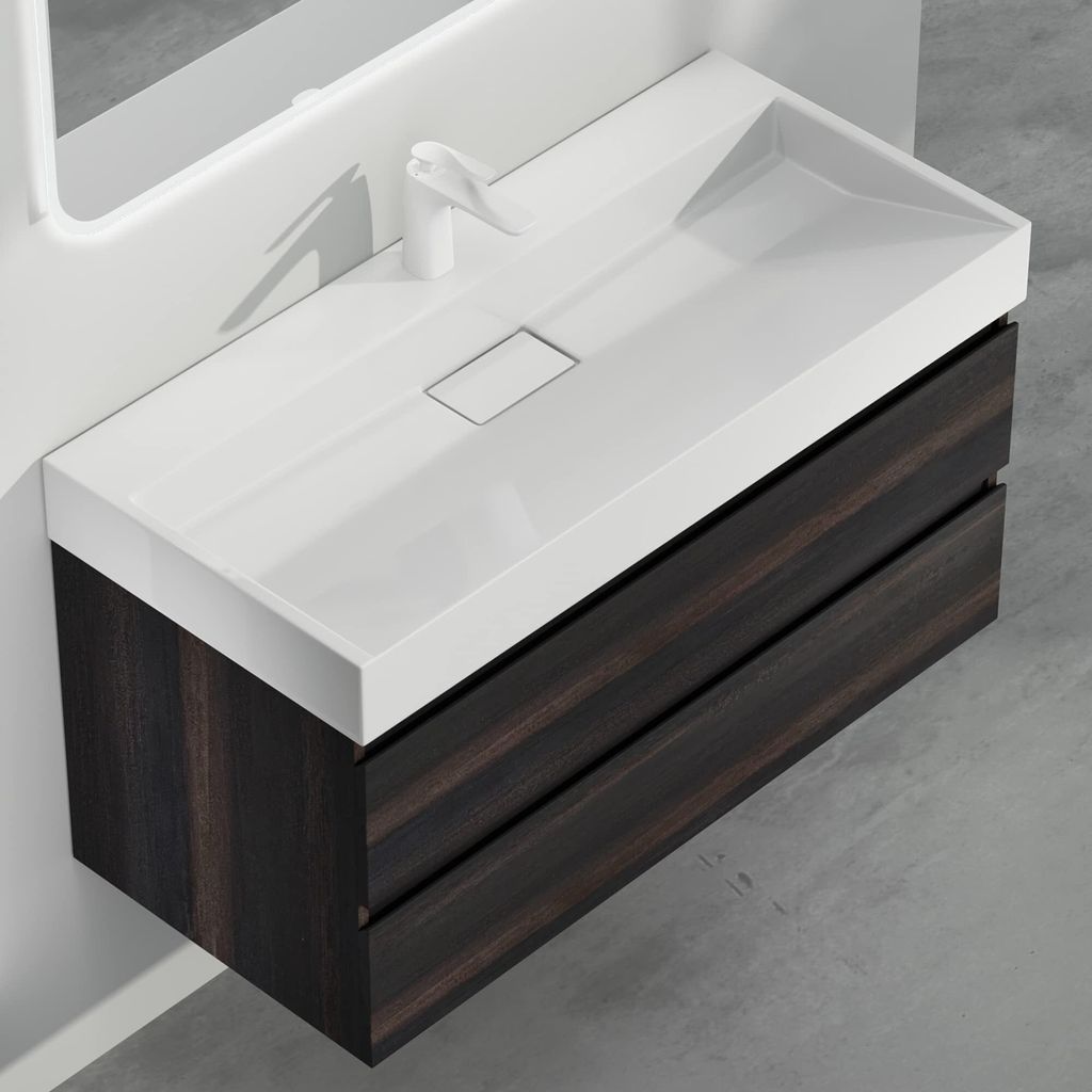 Dieses Badmöbel-Set von Mai & Mai macht dein Badezimmer zum echten Hingucker! Der wandhängende Unterschrank in cooler Beton-Optik misst 60x38x56 cm und hat zwei praktische Schubladen mit Soft-Close-Funktion - nichts knallt mehr zu! Das integrierte Mineralguss-Waschbecken in Weiß ist super pflegeleicht und in einem Stück gegossen. Die hochwertige Messing-Ablaufgarnitur rostet nicht und die verstellbaren Beschläge machen die Montage zum Kinderspiel. Besonders clever: Die obere Schublade hat eine U-förmige Aussparung für den Siphon. Aus feuchtigkeitsbeständigem Holzwerkstoff - hält also auch in feuchter Badezimmerluft problemlos. Seit über 20 Jahren steht Mai & Mai für Qualität im Sanitärbereich. Hol dir dieses komplette Set und genieße jeden Morgen ein bisschen Luxus im Bad!