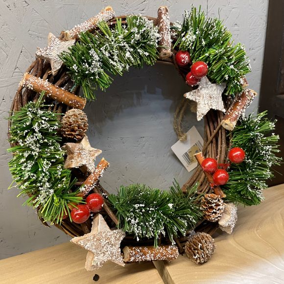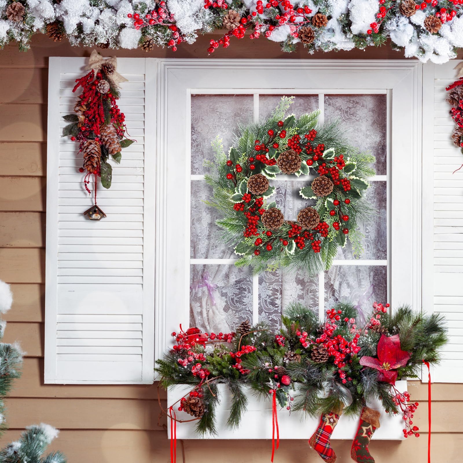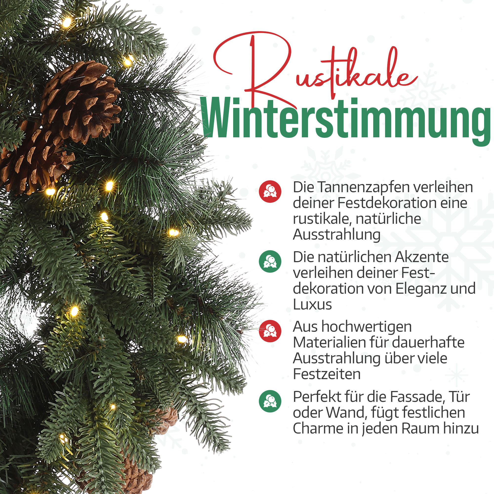 Oh, du fröhliche! Dieser wunderschöne Weihnachtskranz bringt sofort Festtagsstimmung an deine Haustür. Mit stolzen 60cm Durchmesser ist er ein echter Hingucker - ob drinnen im Flur oder draußen an der Eingangstür.\n\nJeder Kranz ist handgefertigt und steckt voller liebevoller Details: Weihnachtskugeln, Glocken und kunstvolle Ranken aus Tannenzweigen verbreiten pure Weihnachtsmagie. Aus hochwertigem PVC-Material gefertigt, hält er viele Jahre und verblasst nicht so schnell.\n\nDas Tolle: Du kannst die Ästchen ganz nach deinem Geschmack biegen und formen - so wird jeder Kranz ein Unikat! Perfekt nicht nur für die Tür, sondern auch für die Wand, den Kamin oder im Garten. \n\nÜbrigens: Ein super Geschenk für Weihnachtsfans! Aber wenn du ihn draußen aufhängst, pass bei starkem Wind und Regen besser auf - dann hält er noch länger.\n\nLieferumfang: 1x Kranz + guter Service. Da freut sich sogar der Weihnachtsmann!