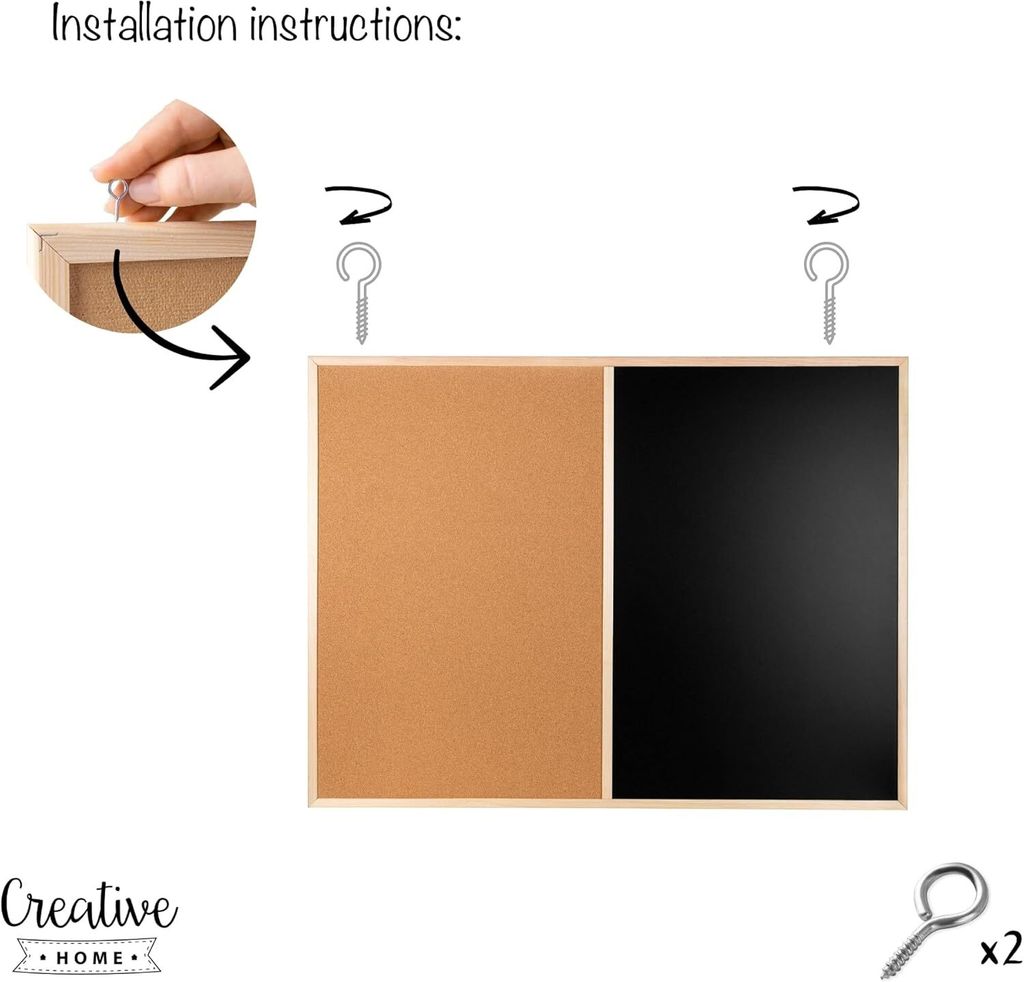 So eine praktische Kreidetafel! Mit den Maßen 60x40cm passt sie super in dein Zuhause, Café oder Geschäft. Der Rahmen aus massivem Kiefernholz sieht total natürlich aus und du kannst sie wahlweise hochkant oder quer aufhängen - komplett mit Montageset inklusive! Die schwarze Oberfläche ist zwar nicht magnetisch, aber perfekt für Kreide oder Kreidestifte. Einfach beschreiben, abwischen und neu beschreiben - praktischer geht's nicht! Perfekt für To-do-Listen, Speisekarten oder kreative Nachrichten. Leicht, funktional und sieht dabei noch gut aus. Ein echter Allrounder für jeden Raum!
