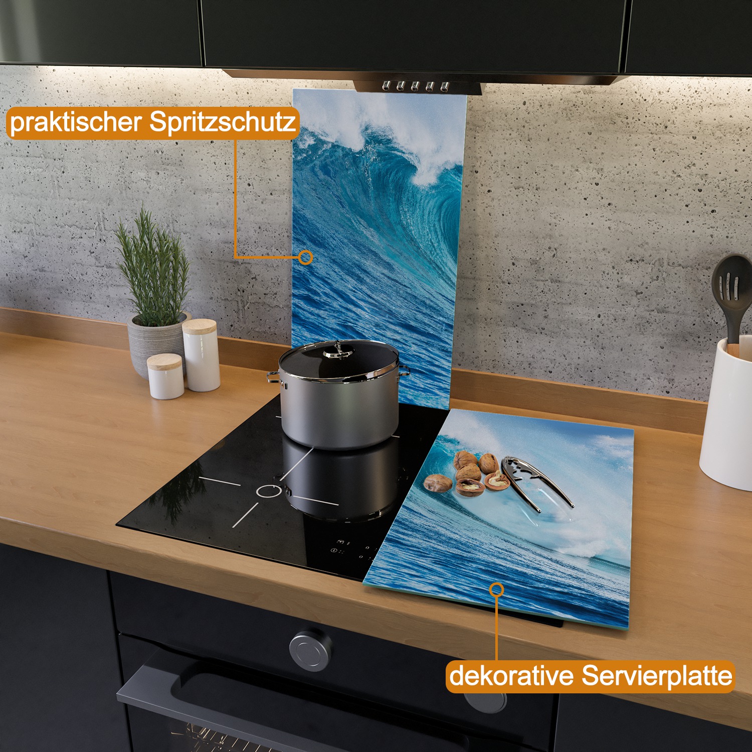 Verwandle deine Küche in eine toskanische Idylle! Diese wunderschöne 2-teilige Herdabdeckplatte aus 4mm starkem Sicherheitsglas zeigt ein traumhaftes Landhaus-Motiv aus der Toskana. Mit den Maßen 60x52cm passt sie perfekt auf die meisten Ceran- und Induktionsherde. Aber sie ist nicht nur hübsch - als Spritzschutz schützt sie deine Küchenrückwand vor Fettspritzern und dein Herd vor Staub und Kratzern. Die rutschfesten Gumminoppen sorgen für sicheren Halt. Einfach auf das ausgekühlte Kochfeld legen und deine Küche erstrahlt im mediterranen Flair. Die Glasoberfläche ist hygienisch, geruchsneutral und leicht zu reinigen - einfach feucht abwischen. Ein echter Hingucker, der deine Küche sofort aufwertet und praktischen Nutzen bietet. Beachte: Vor dem Kauf prüfen, ob dein Herd mit Touchsteuerung für Abdeckplatten geeignet ist.