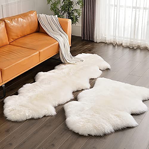 Faux Lammfell Teppich 60x90cm - Weiß Flauschig 6cm Florhöhe