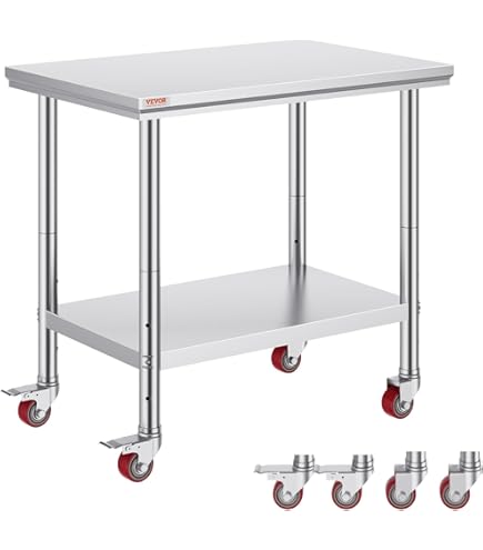 Profis in der Küche? Dieser Edelstahl-Tisch ist ein echter Allrounder! 61x60cm Arbeitsfläche - perfekte Größe für jede Küche. Aus hochwertigem Edelstahl - rostfrei und super hygienisch. Hält bis zu 200kg aus - da kannst du alles draufstellen. Mit 4 Lenkrollen - einfach bewegen und mit Bremsen fixieren. Höhe 86cm - angenehme Arbeitshöhe. Einfach montiert - in wenigen Minuten aufgebaut. Perfekt für Restaurant, Hotel, Bar oder auch Heimwerker. Leicht zu reinigen - einfach abwischen. Unterregel für zusätzlichen Stauraum. Echt robust für den täglichen Einsatz!