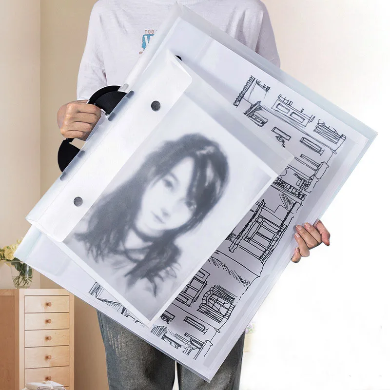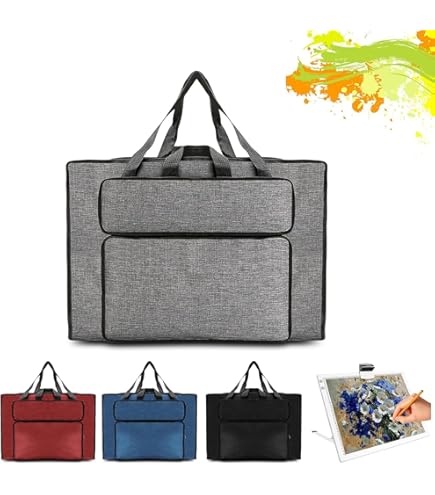 Richtig praktische Tasche für alle Künstler und Studenten! 63,5x48,3cm groß - passt für Poster, Zeichnungen, Leinwände und andere Kunstwerke. Aus transparentem PVC und Vliesstoff - siehst du sofort was drin ist. Mit Reißverschluss - alles sicher verschlossen und wasserdicht! Schützt deine Werke vor Regen, Staub und Knitterfalten. Leicht zu tragen dank Griff - perfekt für unterwegs. Ob für die Kunstschule, Ausstellungen oder einfach zum Aufbewahren deiner Projekte - diese Tasche ist ein echter Lebensretter! Endlich müssen deine Kunstwerke nicht mehr geknickt werden!