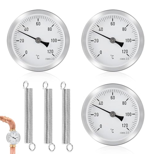 Du willst die Temperatur an deinen Heizungsrohren checken? Mit dem URPIZY Rohrthermometer geht das ratzfatz! Dieses praktische Teil aus verzinktem Stahl lässt sich super schnell mit der mitgelieferten Feder am Rohr befestigen – kein Kleben oder Bohren nötig. Das Bimetall-Messsystem sorgt für zuverlässige Werte von 0 bis 120°C, und die Reaktionszeit liegt bei unter 40 Sekunden. Perfekt für Heizungsrohre, Industrieanlagen oder auch im Hobbykeller. Das Ziffernblatt hat nen Durchmesser von 63 mm, also gut ablesbar, und die gesamte Größe ist 6,3 x 6,3 x 1 cm – handlich, aber robust. Die Genauigkeitsklasse 2.0 bedeutet, dass du dich auf die Anzeige verlassen kannst. Egal ob du Heizkosten sparen willst oder einfach nur neugierig bist: Dieses Thermometer ist ein echter Helfer. Lieferumfang: 1x Thermometer und 1x Feder. Kleiner Hinweis: Farben und Maße können minimal abweichen, aber die Funktion ist top. Einfach anklippen, ablesen, und du weißt Bescheid!