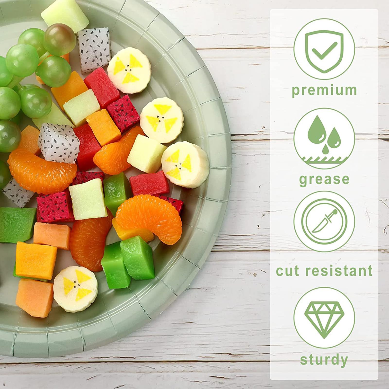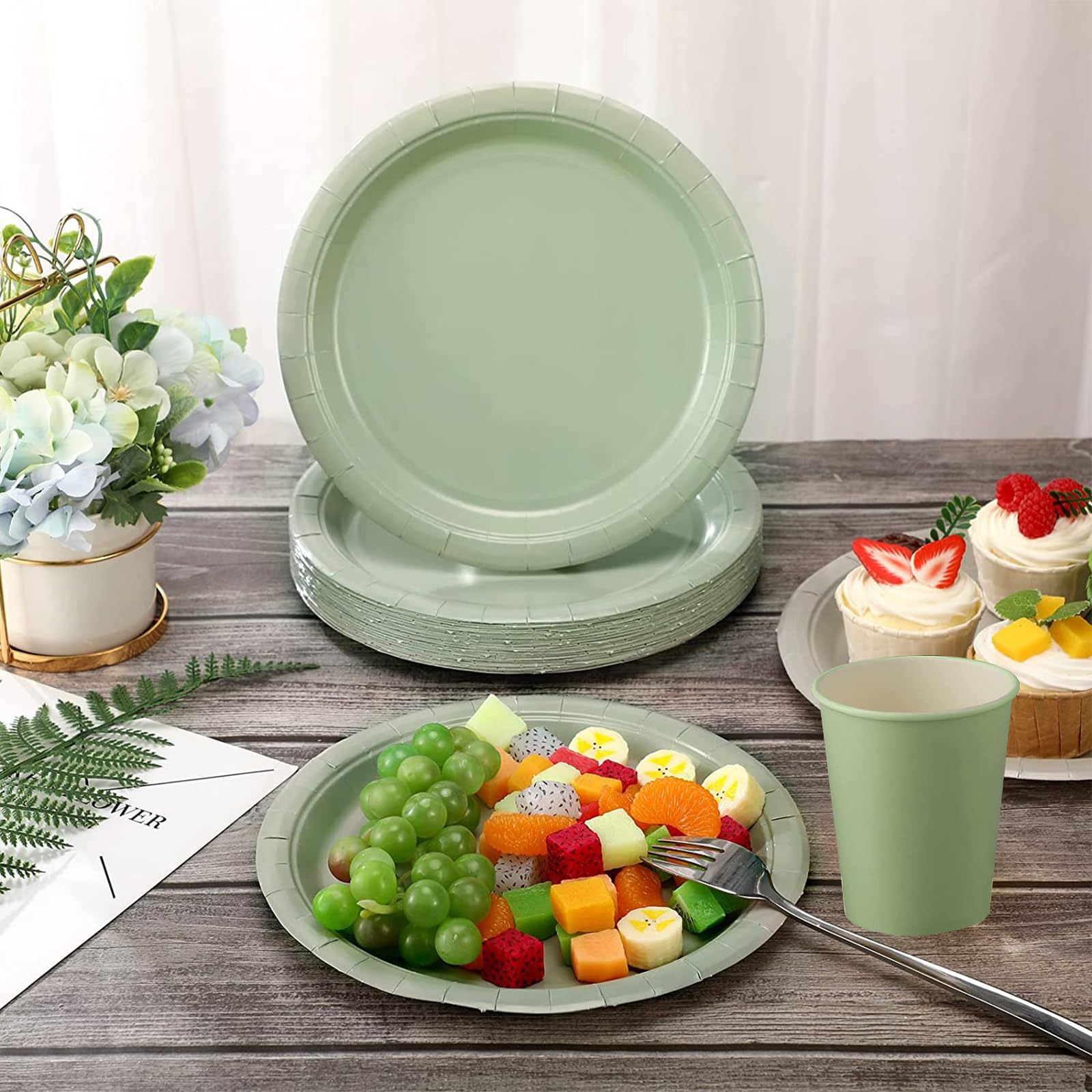 Perfekt für deine nächste Party! Dieses 64-teilige grüne Partygeschirr-Set hat alles, was du für 16 Gäste brauchst. Enthalten sind 16 große 9-Zoll-Teller, 16 kleine 7-Zoll-Dessertteller, 16 praktische Servietten und 16 9-Unzen-Becher. Alles aus hochwertigem, lebensmittelechtem Papier - sicher für deine Gäste und die Umwelt! Die robusten Pappteller halten auch feuchten Speisen stand ohne durchzuweichen. Einfarbig in Grün sieht es stylisch aus und passt zu jedem Partythema. Nach der Feier einfach entsorgen - kein lästiges Abspülen mehr! Ideal für Kindergeburtstage, Gartenpartys, Picknicks oder Hochzeiten. Spart dir Zeit und Nerven, damit du die Party richtig genießen kannst. Die muschelförmigen Teller sehen nicht nur gut aus, sondern sind auch super praktisch. Mach deine Feier zu einem unvergesslichen Erlebnis mit diesem komplettem Geschirr-Set!