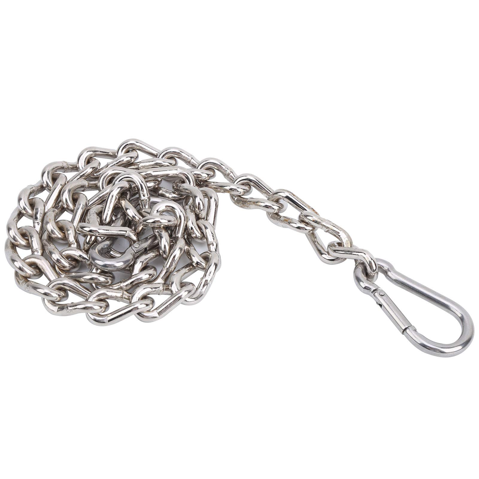 Stabiler geht's kaum! Diese robuste Hängekette aus Edelstahl 304 ist perfekt für alle Aufhängungen drinnen und draußen. Mit 66 cm Länge und 16 mm Breite hält sie locker Sandsäcke, Hängematten, Schaukeln oder Markisen aus. Die beiden Karabiner machen die Montage super einfach - einfach einhaken und fertig! Du kannst die Kette sogar in der Länge anpassen, indem du die Position der Haken veränderst. Rostfrei und extrem langlebig - diese Kette macht auch bei Wind und Wetter nicht schlapp. Perfekt fürs Fitnessstudio, den Garten oder Spielplatz. Mit 425 Gramm Gewicht ist sie stabil, aber nicht zu schwer. Ein echtes Allround-Talent für alle, die was zu hängen haben!
