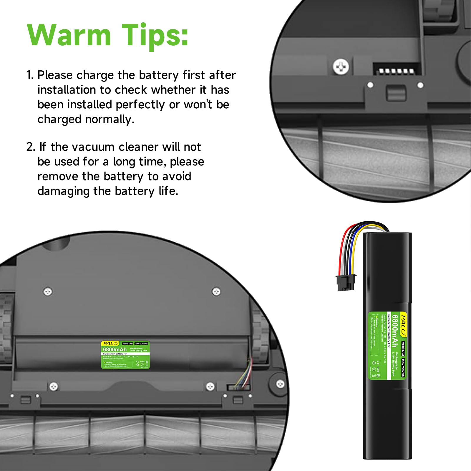 Hey, wenn dein Neato Roboter schlapp macht, ist dieser Ersatzakku genau das Richtige! Mit satten 6800mAh hält der viel länger durch als das Original. Passt perfekt für Botvac Connected D3, D4, D5, D6, D7 und die + Modelle. Auch kompatibel mit D301, D303, D502, D503, D701, D702, D703, D705. Aber Achtung: Nicht für die D8, D9, D10 Serie geeignet! Aus hochwertigen Li-Polymer Zellen - sicher und langlebig. Mit 14,4V Spannung und ner erwarteten Lebensdauer von über 1200 Ladezyklen. Hat alle möglichen Sicherheitszertifikate (CE, FCC, RoHS) und Schutz gegen Überladung, Kurzschluss etc. Einfach in 5 Minuten einzubauen - einfach die zwei Schrauben unten lösen, alten Akku raus, neuen rein. Kommt mit 30 Tage Geld-zurück und 6 Monaten Garantie. Wenn dein Staubsaugerroboter also nicht mehr will, gönn ihm mal einen frischen Akku!