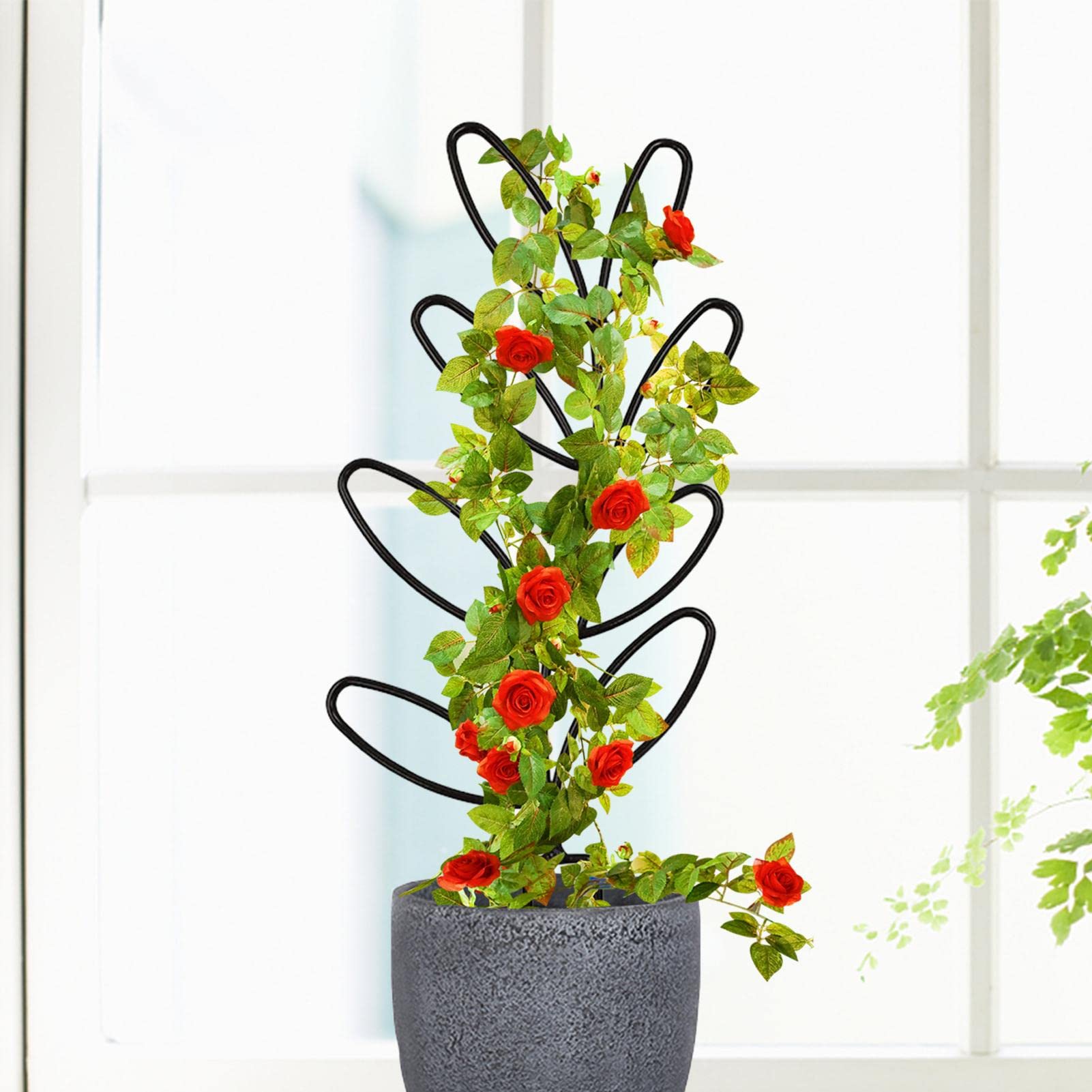 Hey Pflanzenliebhaber! Diese 6 praktischen Pflanzengitter von lyualma sind die perfekte Unterstützung für deine Kletterpflanzen. Mit 25 cm Länge und 15 cm Breite passen sie super in fast alle Töpfe und geben deinen Pflanzen den Halt, den sie brauchen. Aus robustem PP-Kunststoff gefertigt - wiederverwendbar und langlebig! Das coole daran: Sie sind stapelbar! Du kannst sie nebeneinander oder übereinander verbinden und so die perfekte Größe für deine Pflanzen schaffen. Einfach ohne Werkzeug zusammenzustecken - die seitlichen Rillen und oberen Mulden machen's möglich. Verhindert, dass Äste und Blätter wild in alle Richtungen wachsen und sorgt für ein gepflegtes Aussehen. Perfekt für Efeu, Monstera, Philodendron und andere Kletterpflanzen. Ob auf der Fensterbank, im Wohnzimmer oder auf dem Balkon - diese Rankhilfe macht deine Pflanzen zum echten Hingucker! Einfach in die Erde stecken und die Pflanze vorsichtig daran festbinden. Deine Pflanzen werden es dir mit gesundem Wachstum danken!