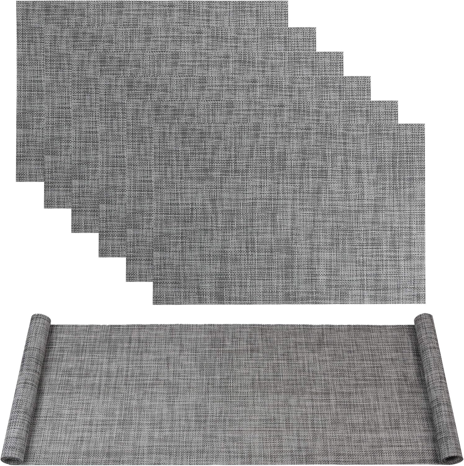 QWORK 6er Set Tischsets 30x45cm - Hitzebeständige Platzsets Grau Rutschfest