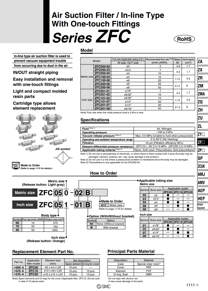 • Luftfilter Inline 6mm - 2 Stück Vakuum Filter ZFC100-06-B
